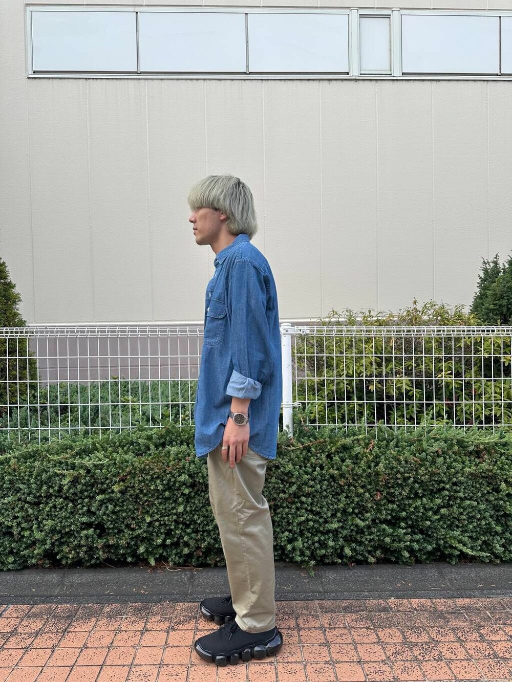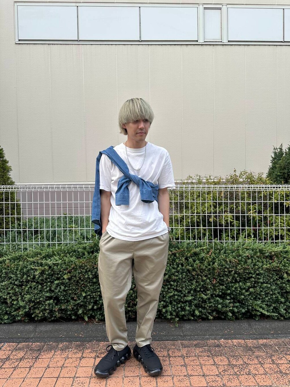 ベージュのパンツと合わせて