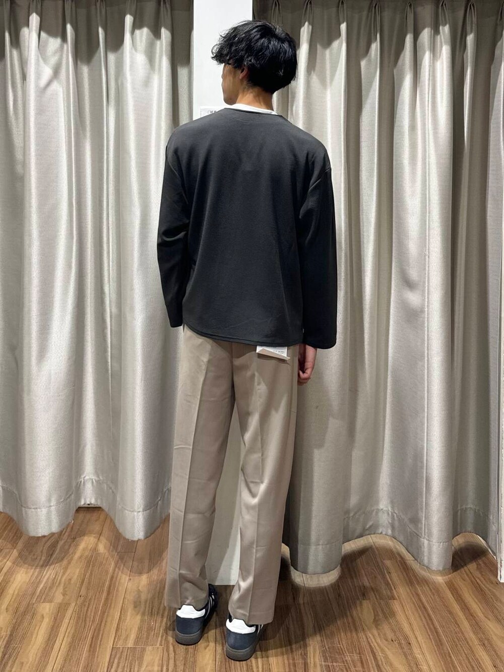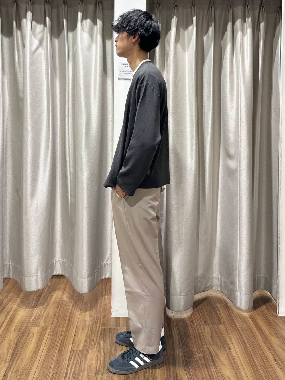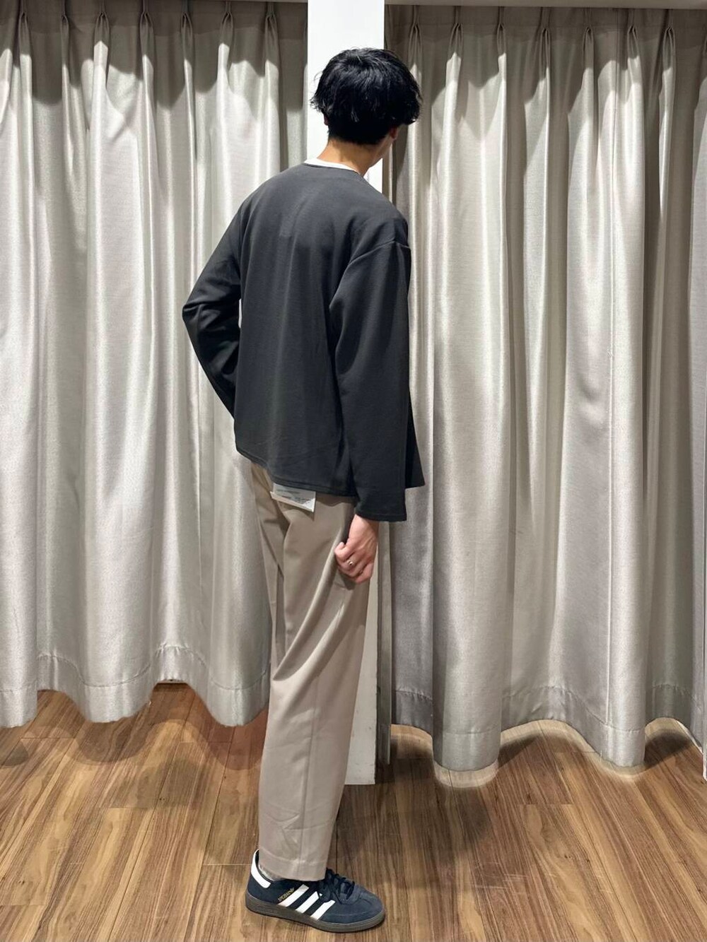 パンツは裏地が微起毛のスラックスパンツ。とにかく使いやすくて、履きやすい。万能パンツ。