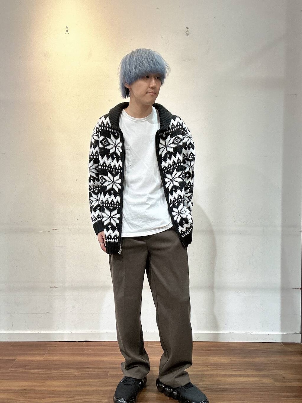 パンツはブラウンで合わせて