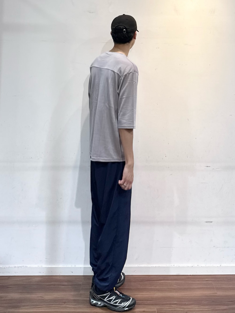 七分袖のTシャツは身幅ゆったりのオーバーサイズ。生地感は厚すぎず、薄すぎずのポンチ素材。気温差の激しい秋(春)に1枚着として活躍してくれます。