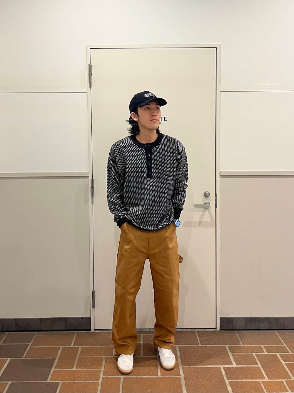 ヘンリーネックはやはり大人カジュアルなスタイルにマッチしますね。これは結構深めにボタンが入っているので全開けで胸筋と胸毛を出したら色気全開になりそうです。