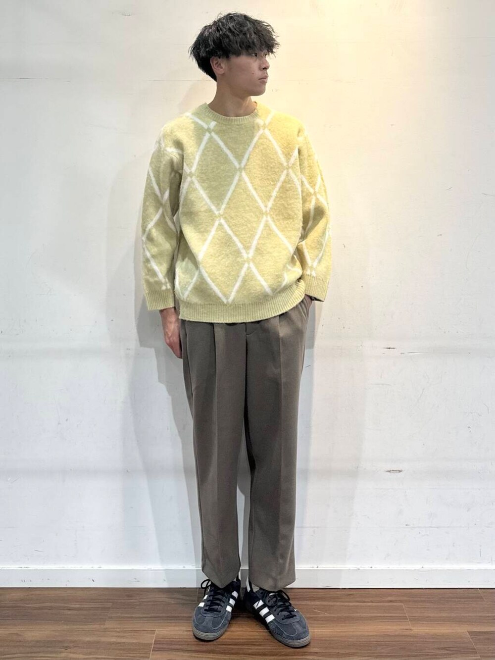 インナーにはシャギーのデザインニットで差し色。コート×スラックスのインナーなので、ラフになり過ぎない感じが◎