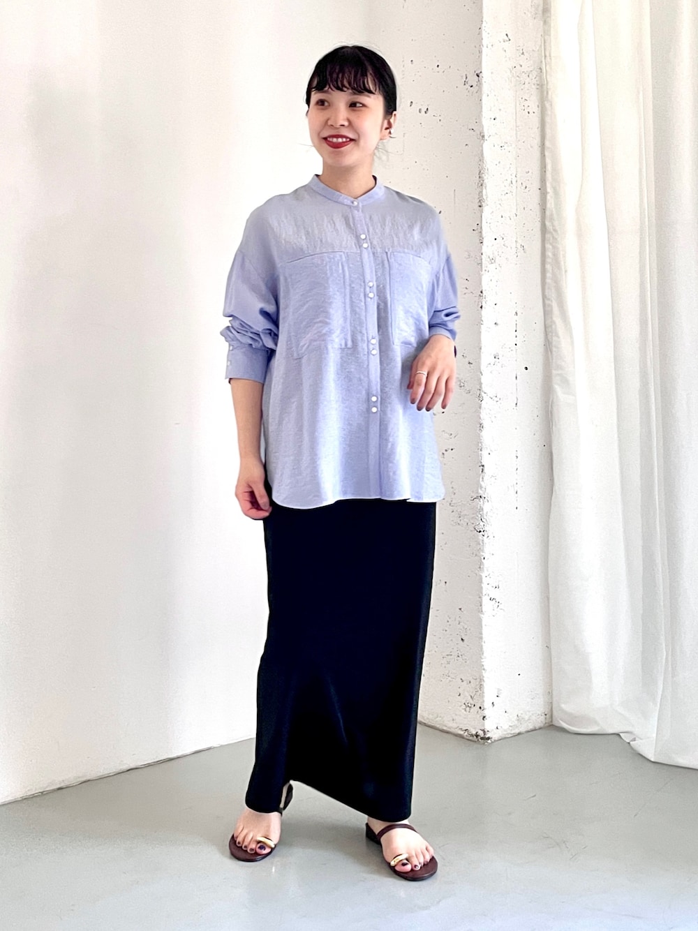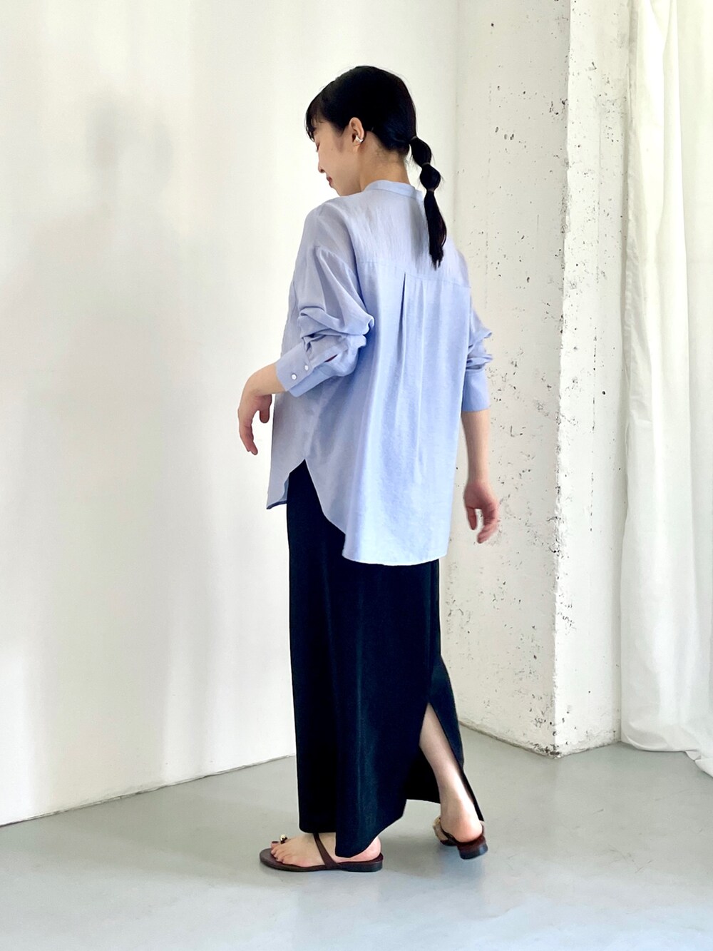 合わせたスカートはタイトシルエットで
