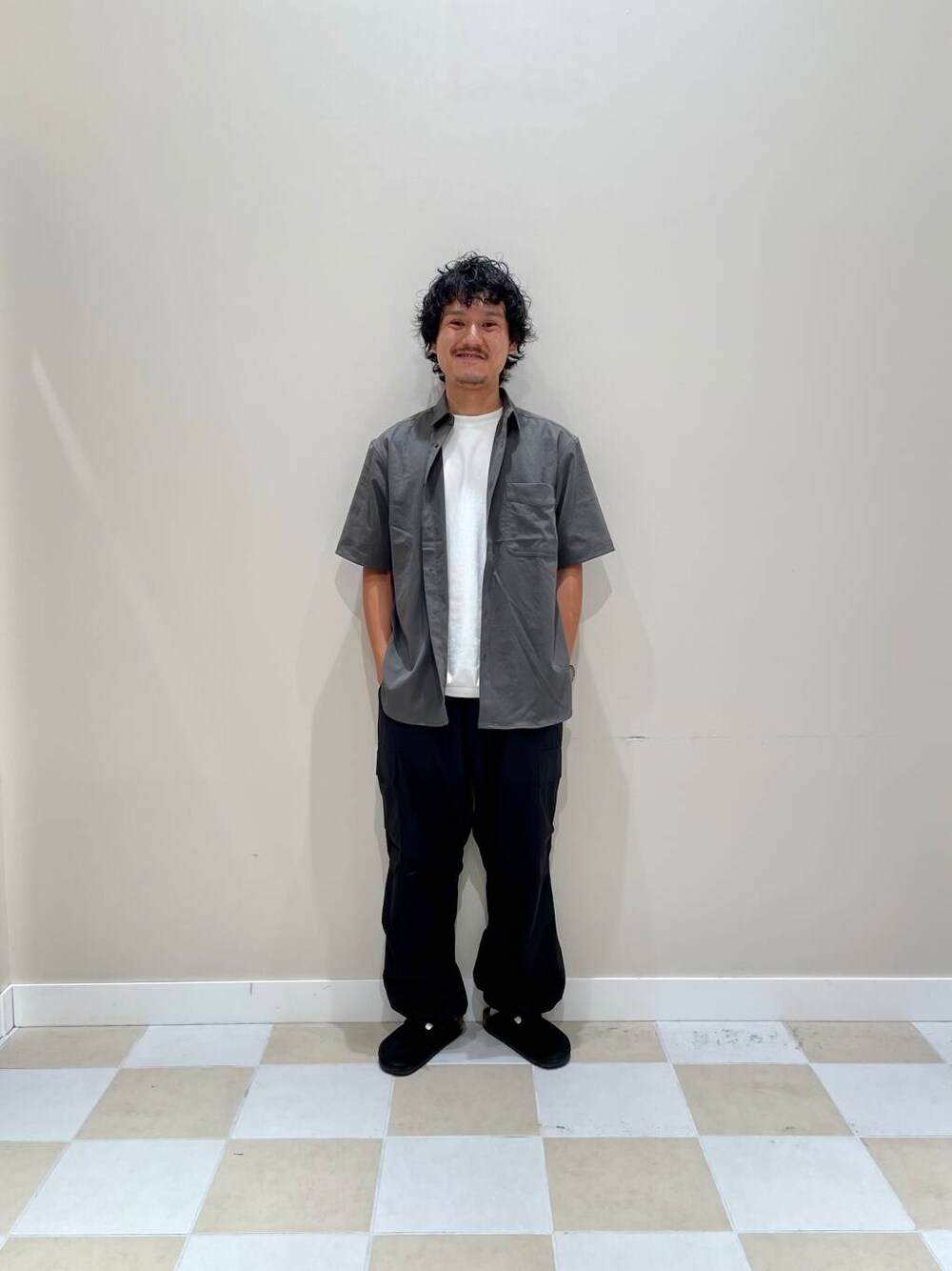 程よくゆとりのあるイージーカーゴパンツです!ポリエステル素材の軽やかな着用感が特徴的で、裾にドローコードが付いているのでシルエットの変化も楽しむことができます!