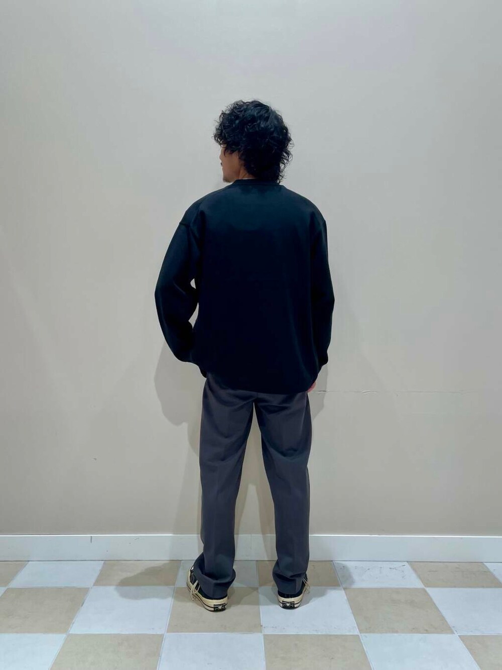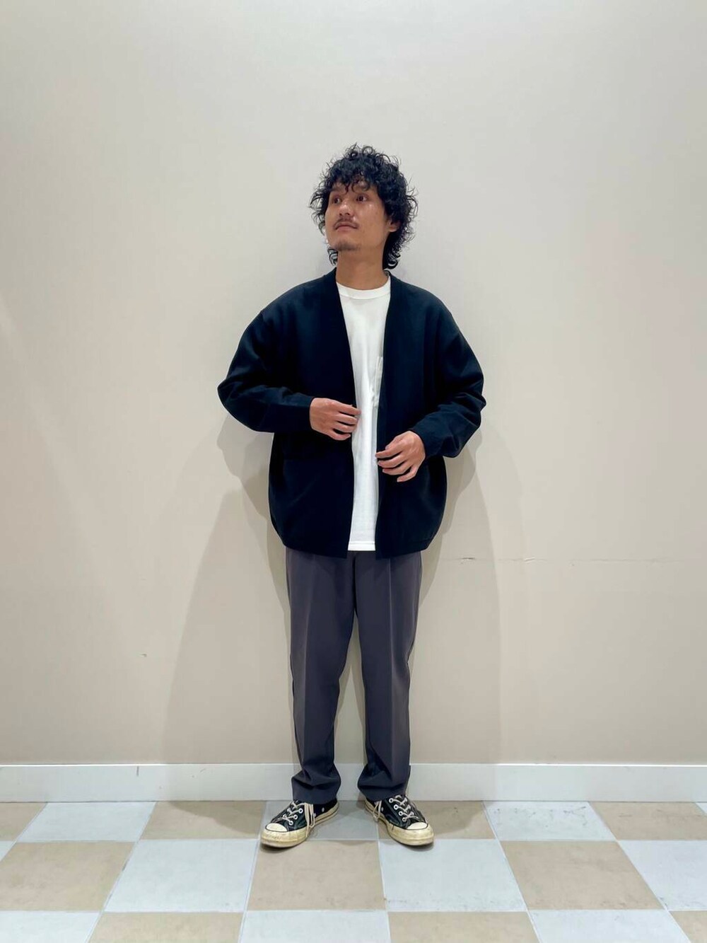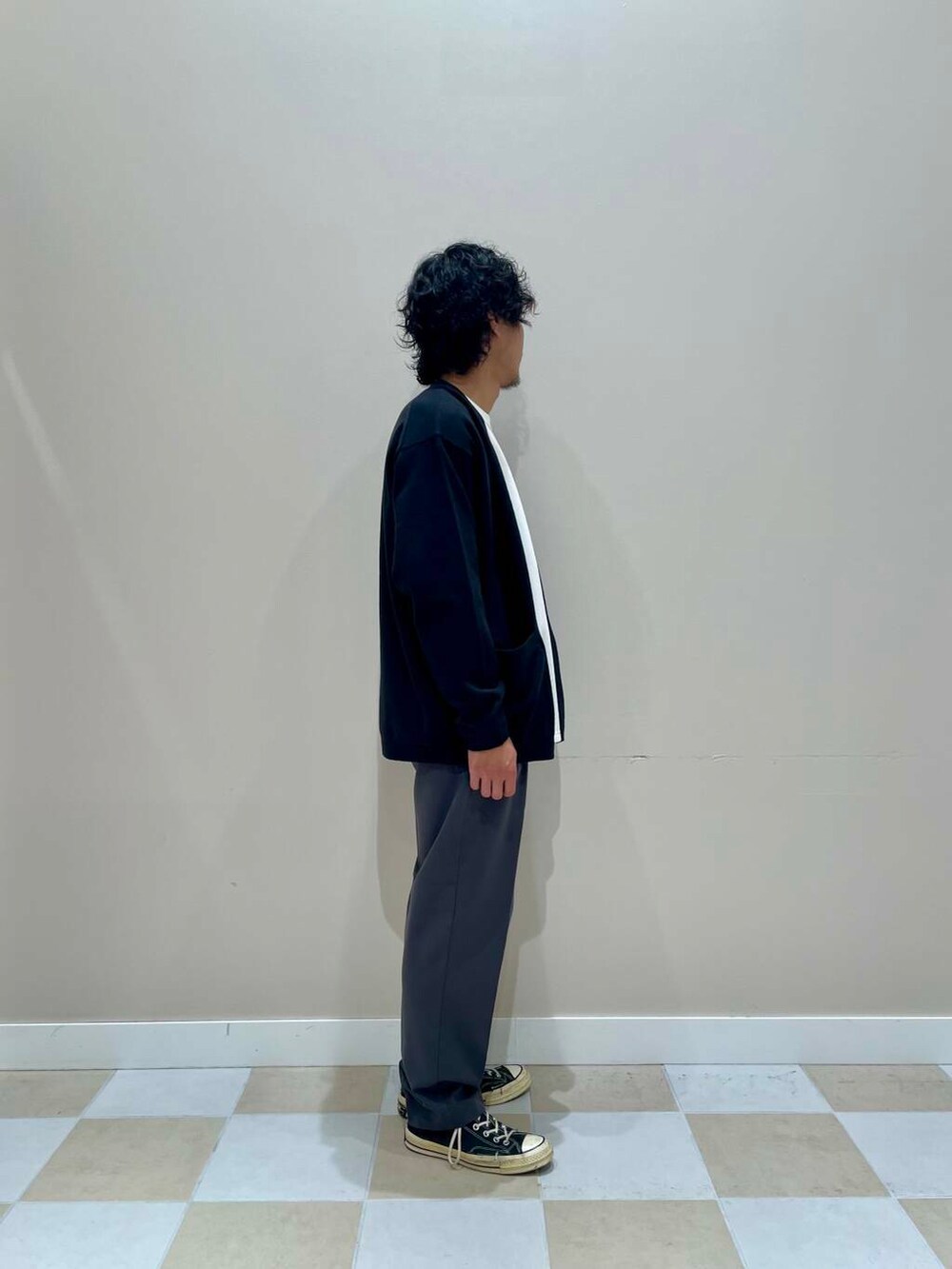 身長172cmでカーディガン、ロンTはLサイズ、パンツはMサイズを着用しています!