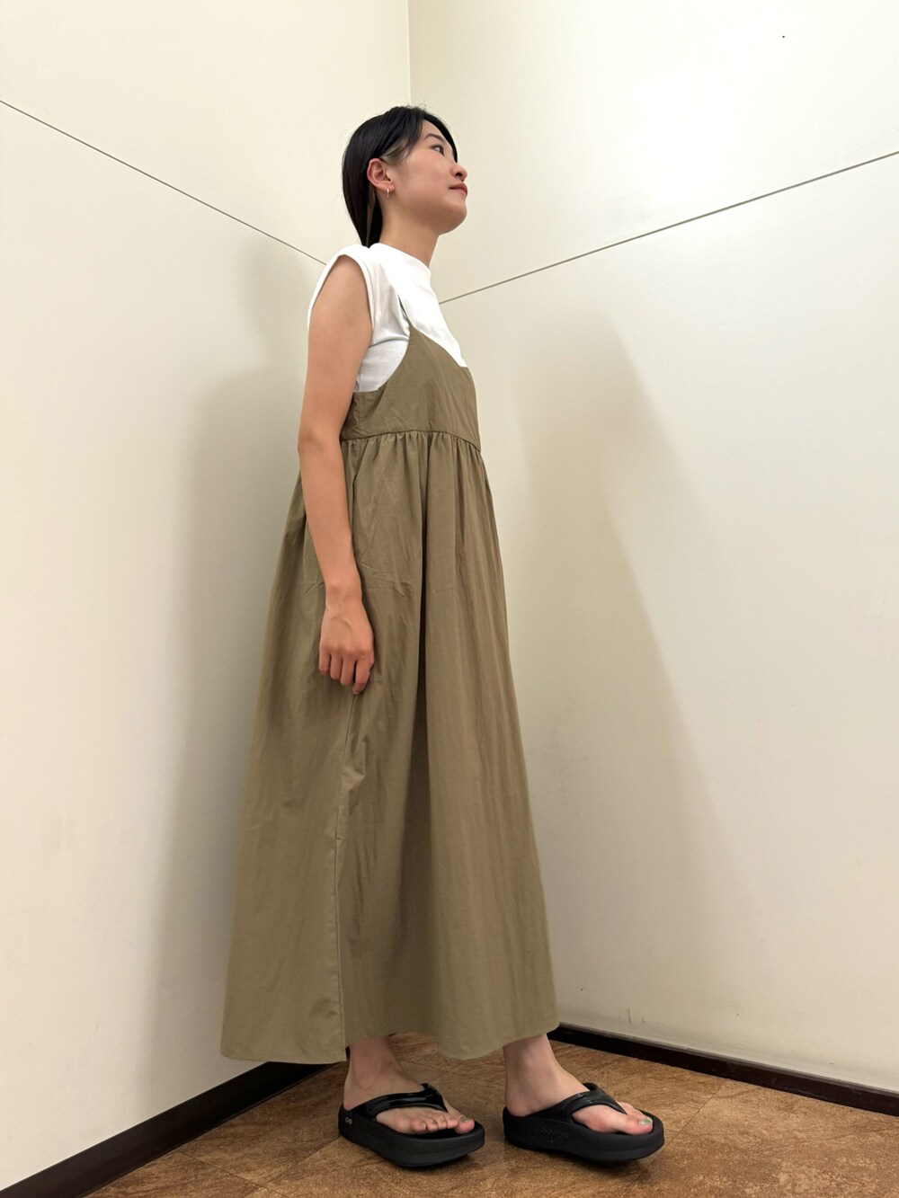 軽くてシワになりづらいナイロン素材のキャミワンピースです👗