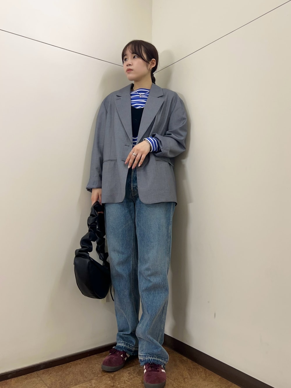 オーバーサイズなので下にニットも着やすいサイズ感です!