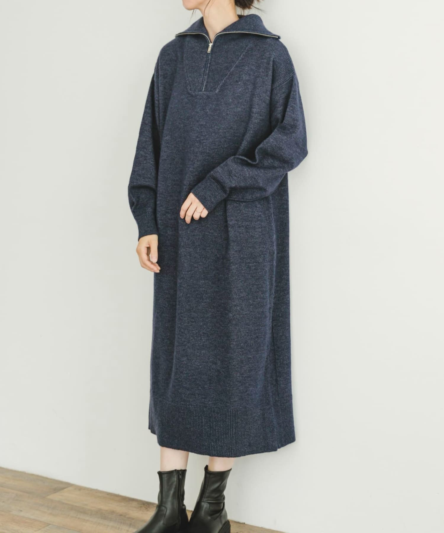 ITEMSハーフジップニットワンピース