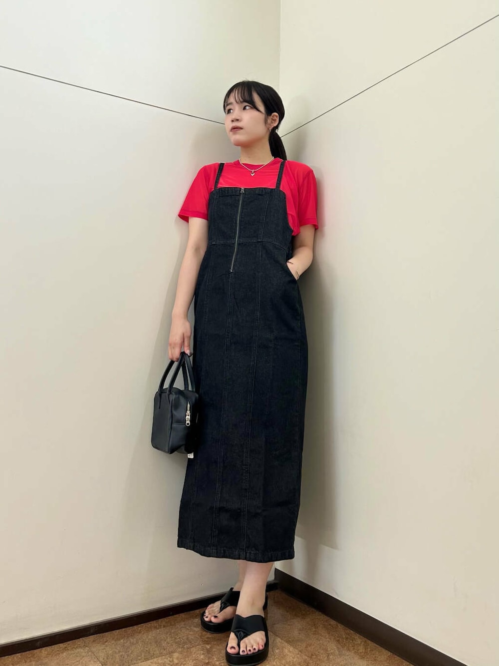 今のシーズンから半袖トップス×デニムワンピで使えて◎