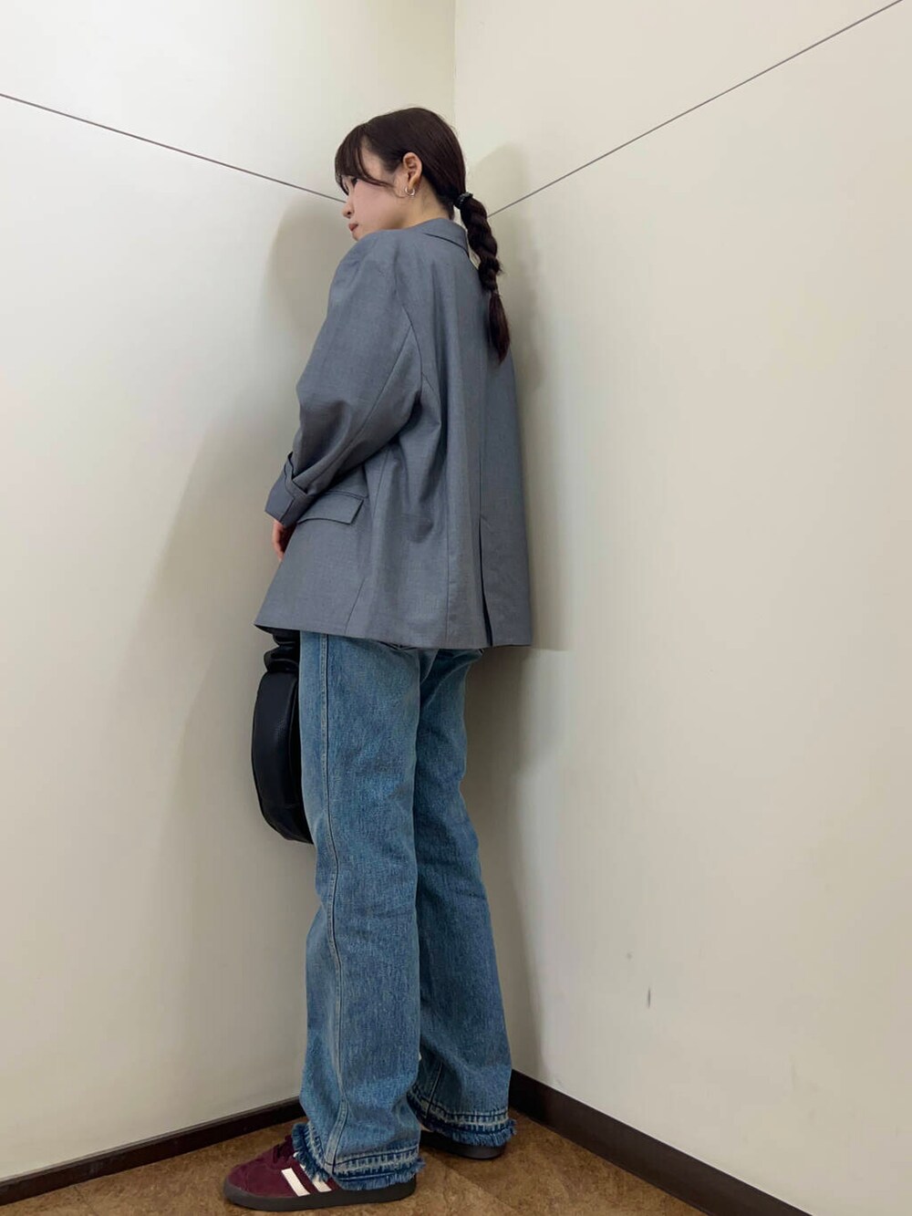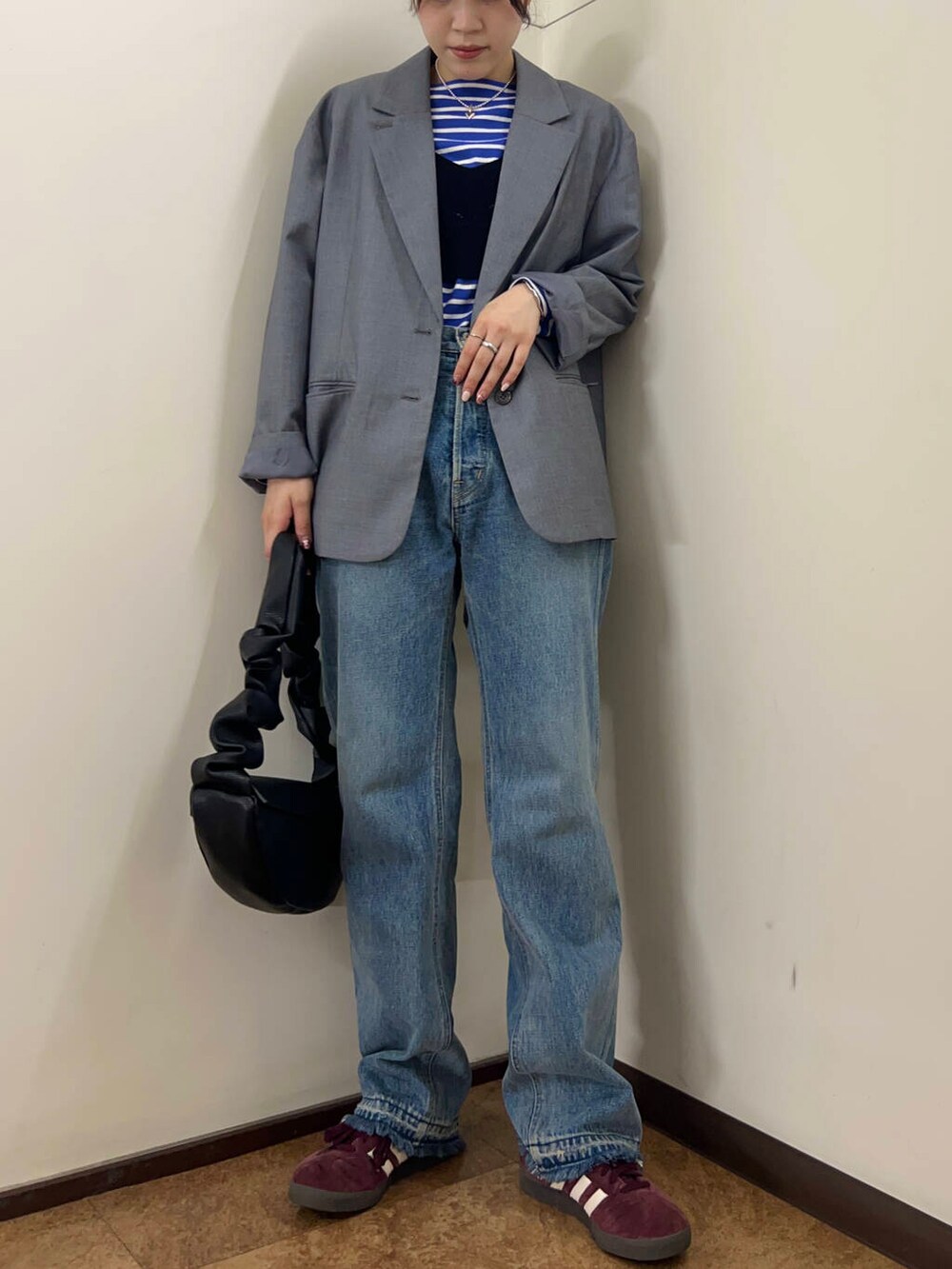 オーバーサイズなので下にニットも着やすいサイズ感です!