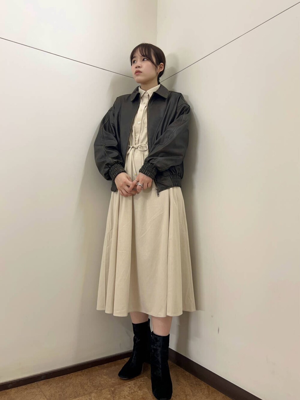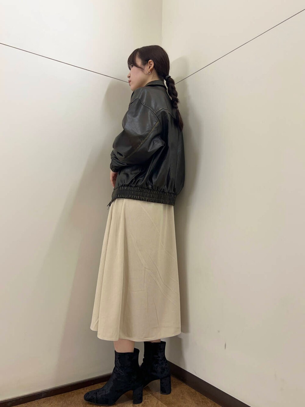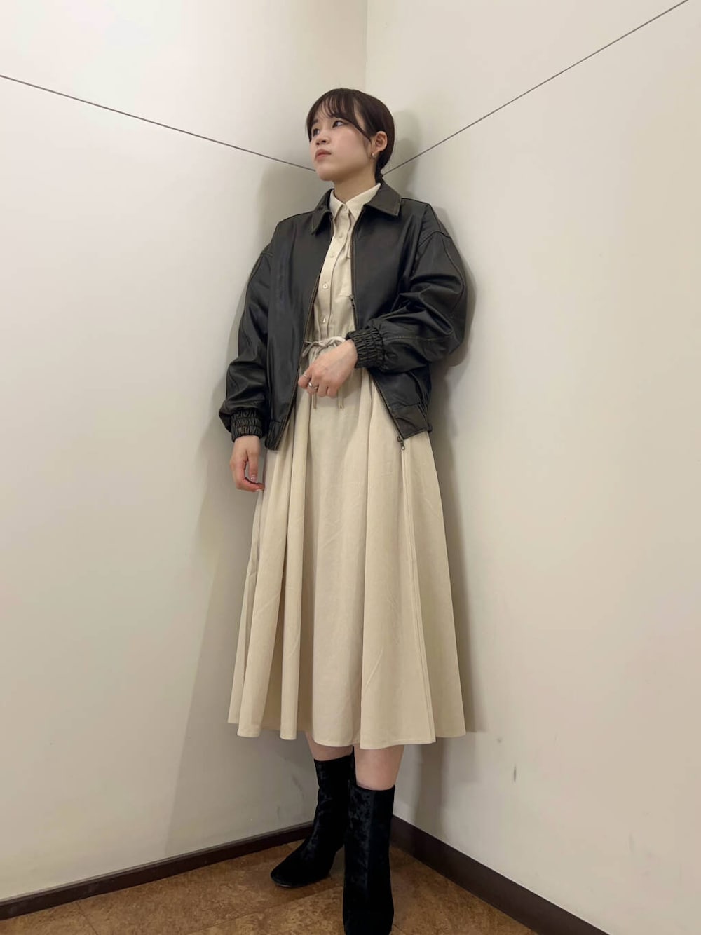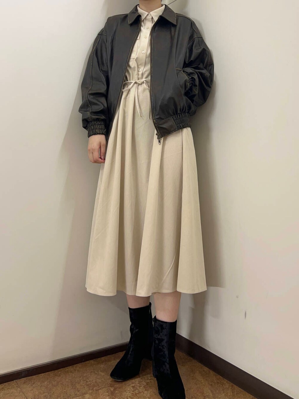 ITEMSアウターのなかでイチオシのヴィンテージレザーライクジャケットと合わせて大人のお出かけコーデに🎶