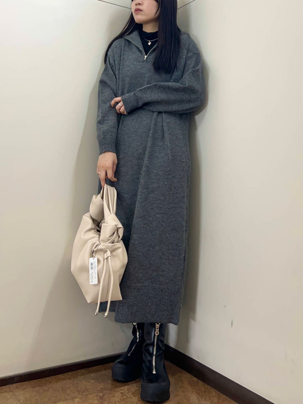 ITEMSハーフジップニットワンピース