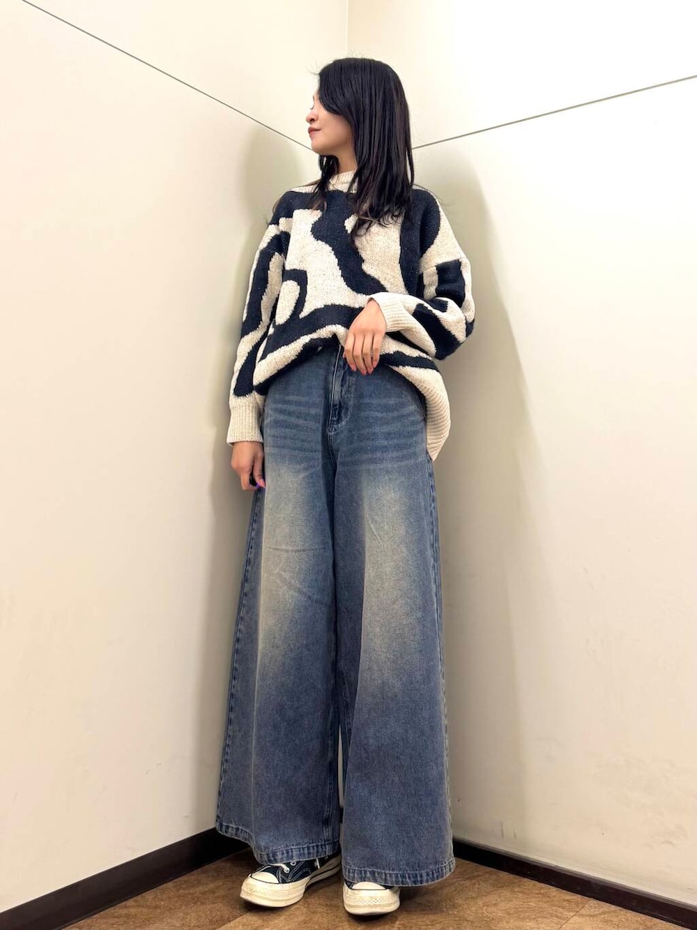モール素材のニットなら春先一枚でも着られるので、しっか長く着られますよ◎