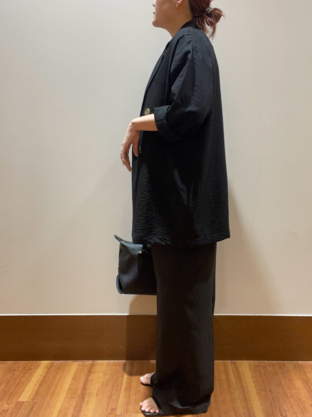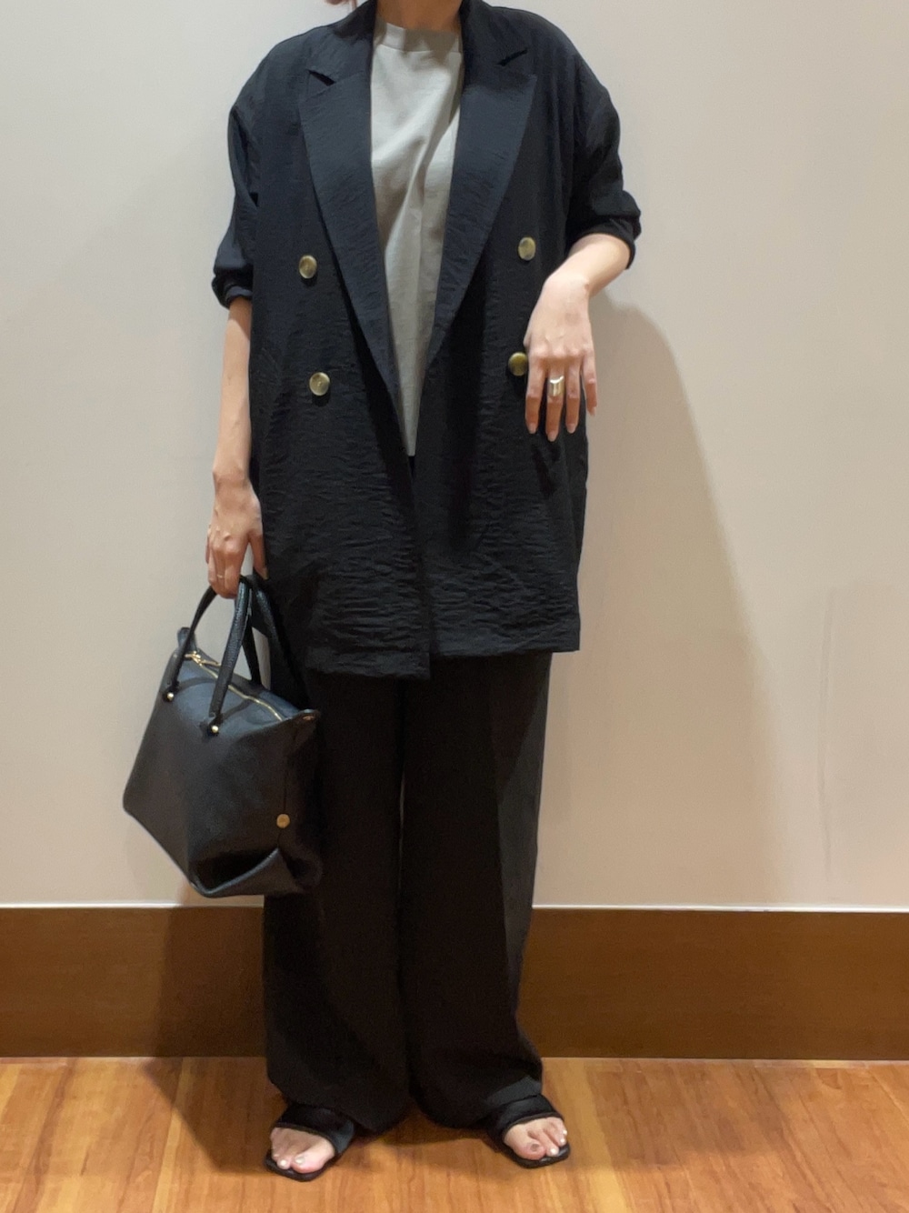 私はワイドパンツとノースリーブのTシャツと合わせて少しカジュアルに。