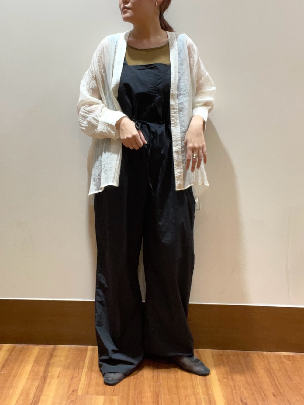 サロペットは長めの丈感なのでウエストを絞っても、裾を折っても○