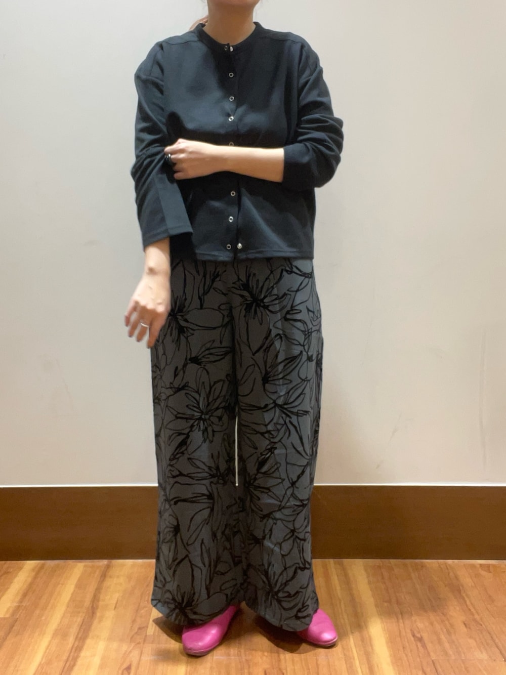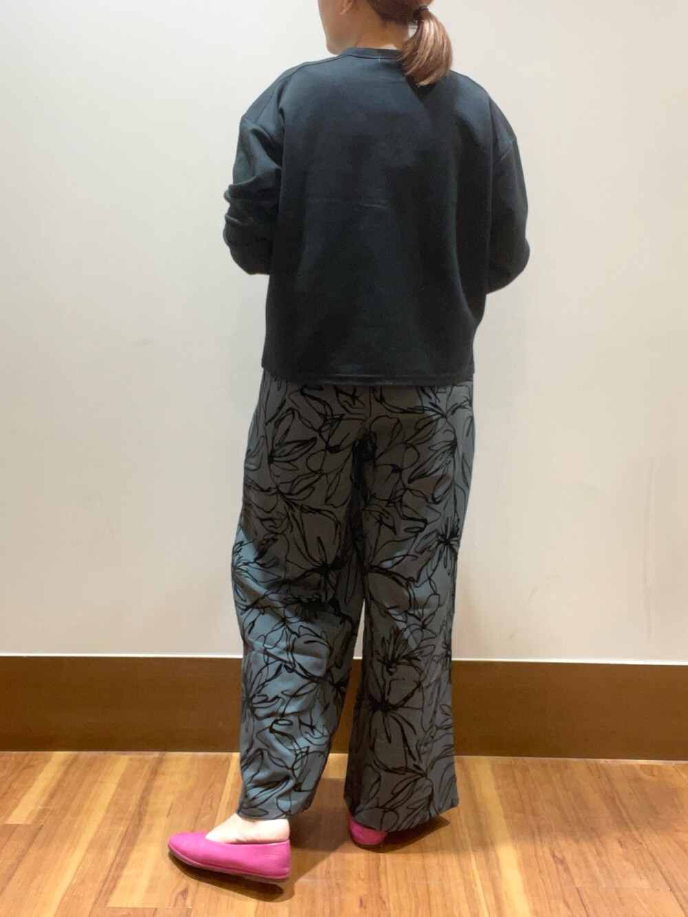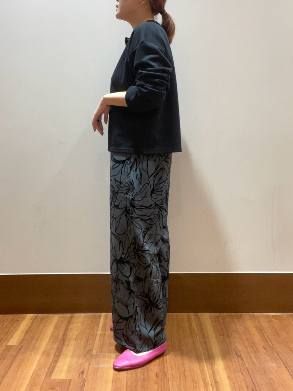 柄デザインがかわいいパンツはワイドストレートのシルエットでウエストゴムで履きやすさも満点ですよ💯