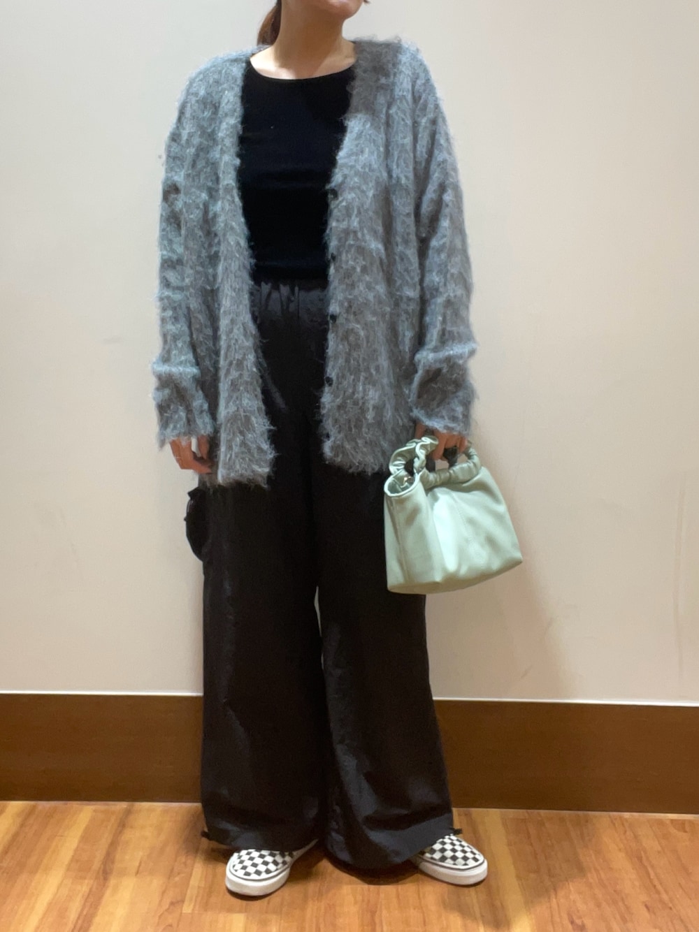 カーディガンはゆとりがある大きさで体型カバーはもちろん寒さ対策にももってこいです!