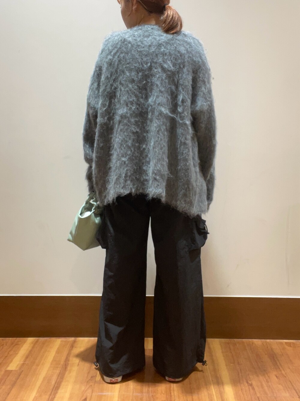 カーディガンとカーゴパンツと合わせてカジュアルに。