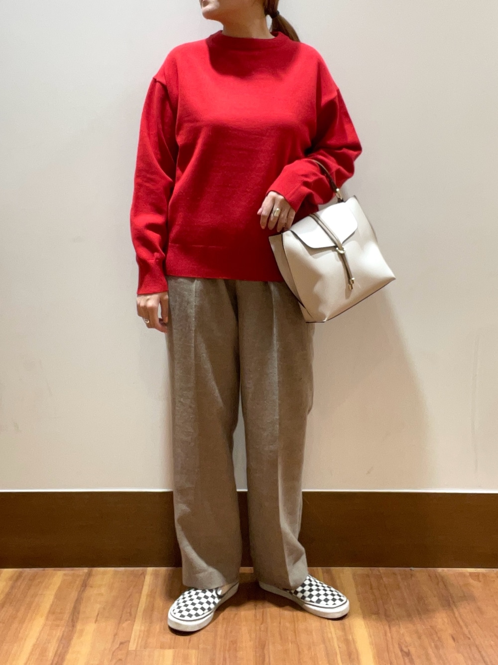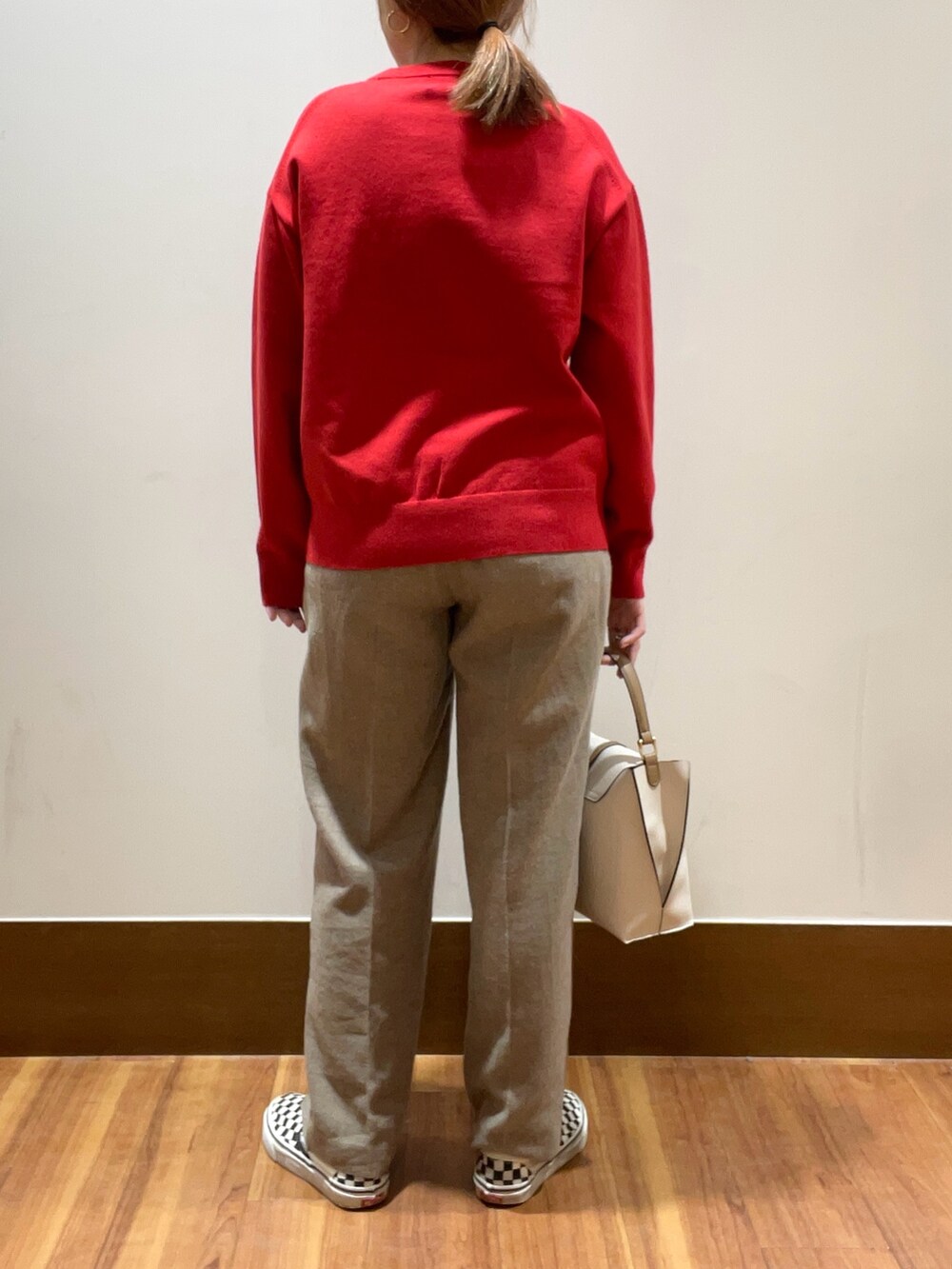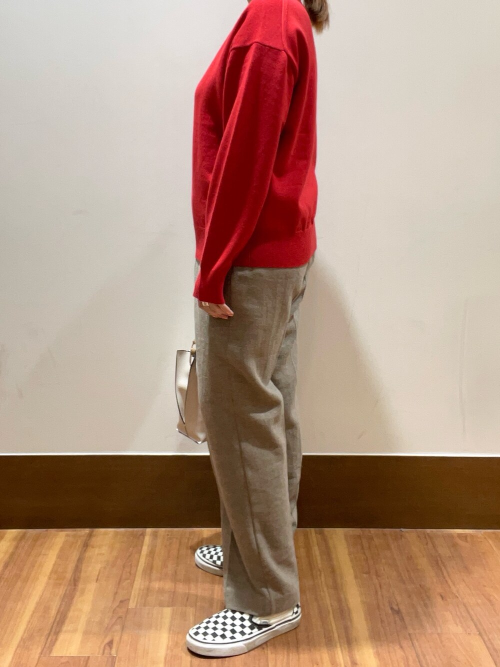 赤にはベージュを合わせて着たい気分だったのでDOORSのパンツを。