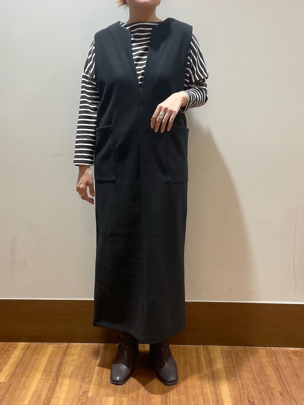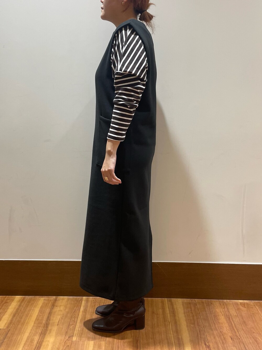 着丈はやや短めなので、ワンピースに合わせても。ボトムスと合わせる時はアウトスタイルがしやすいです♩