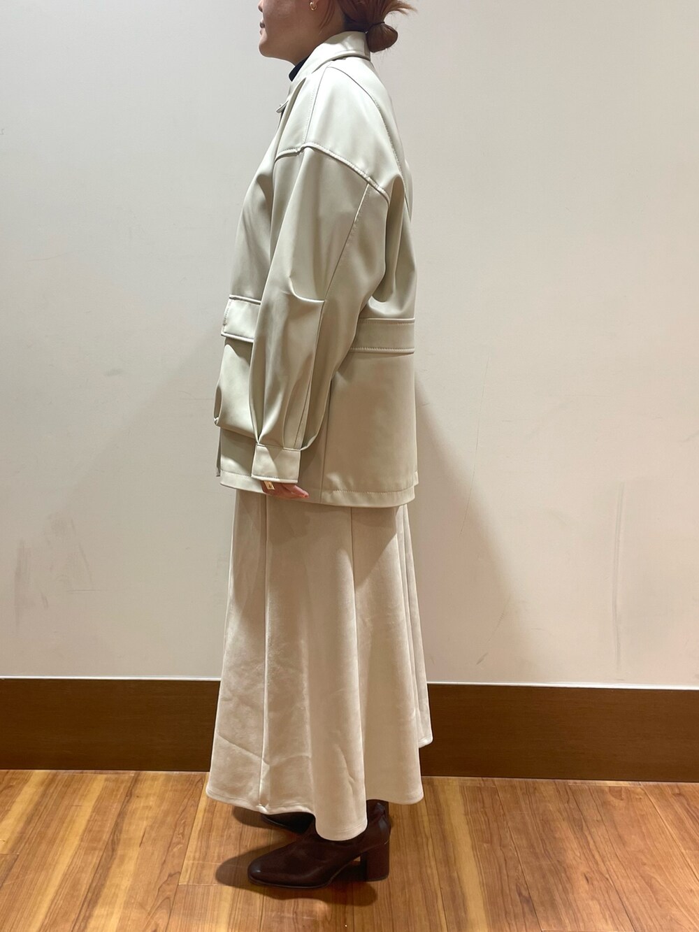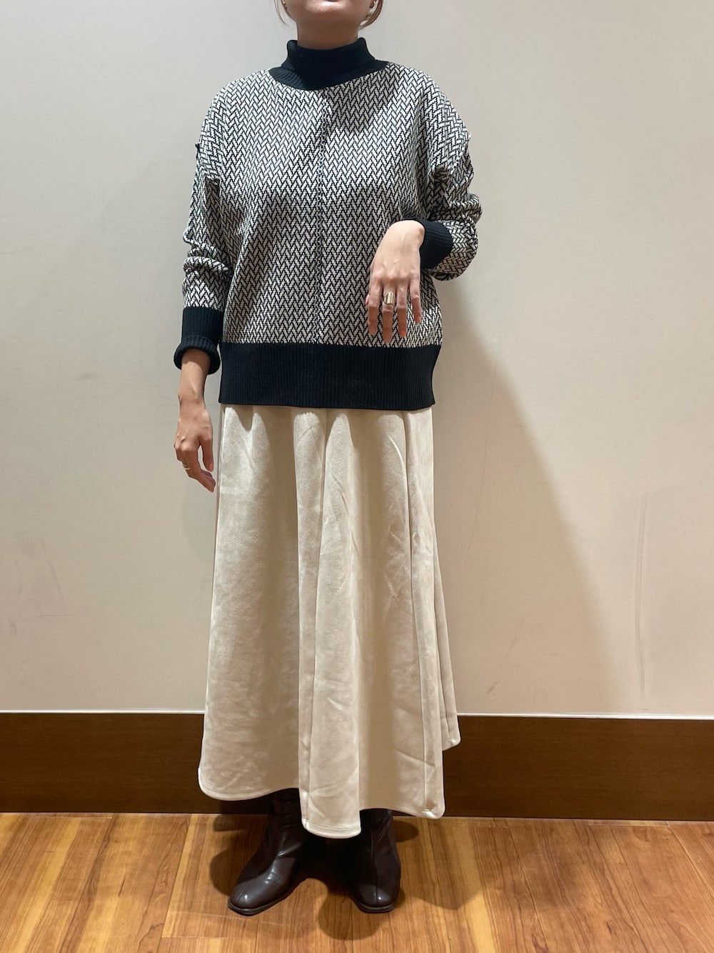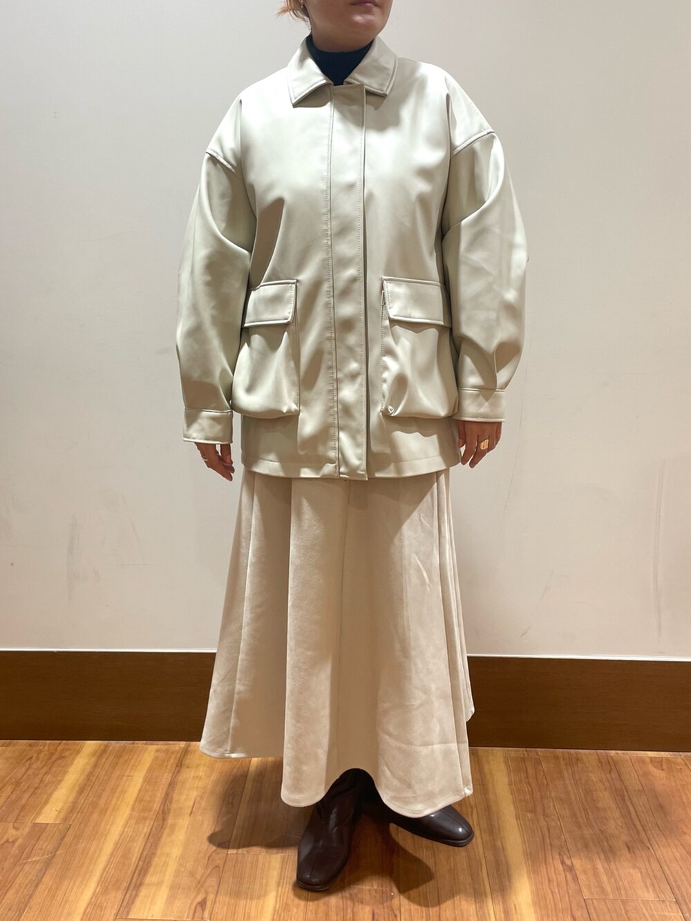 スカートはフレアシルエットが可愛いフェイクスエード素材。