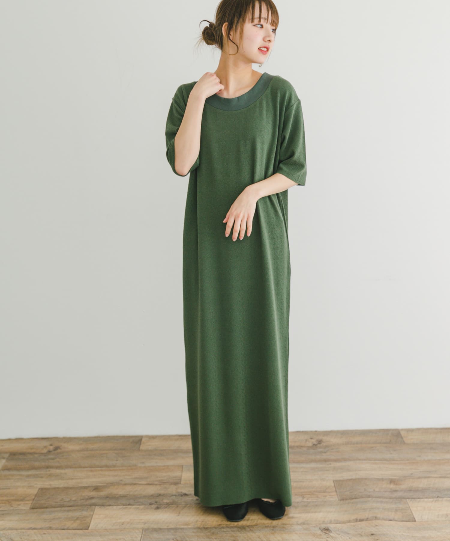 楽ちん!涼しいな、ストレスが効いたワンピース。着丈長めが好きな方におすすめです。