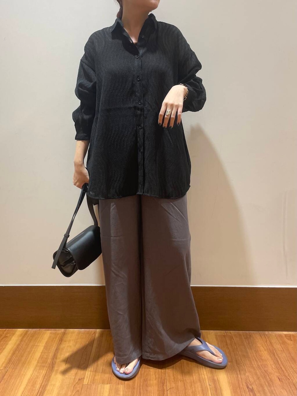 リネンレーヨン素材のパンツと合わせて涼しく楽ちんコーデにしてみました😊