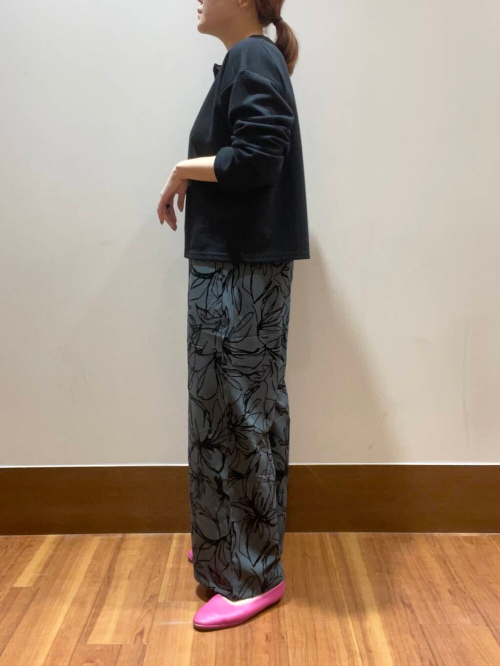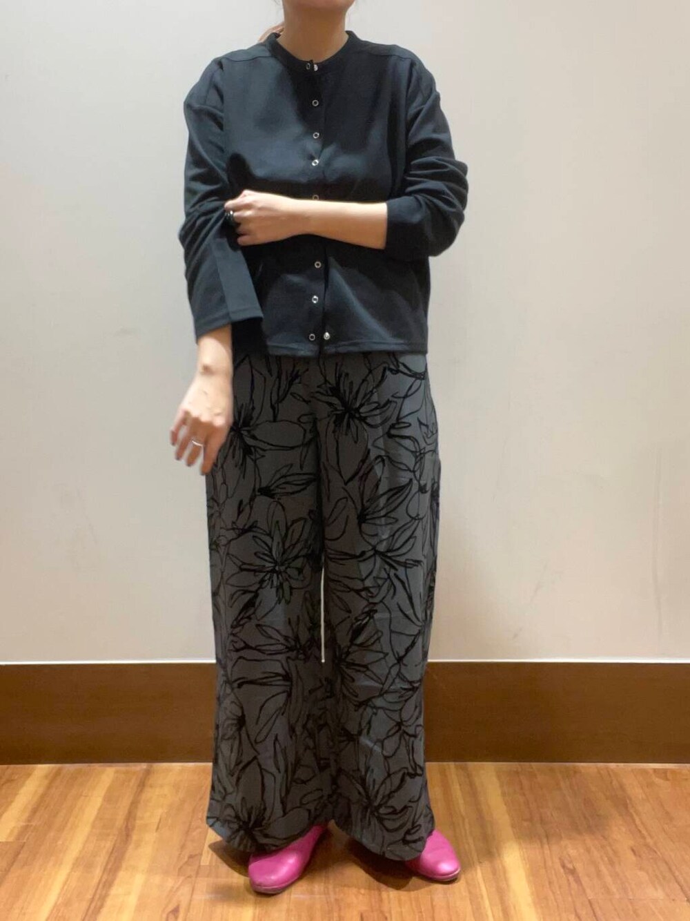柄デザインがかわいいパンツはワイドストレートのシルエットでウエストゴムで履きやすさも満点ですよ💯