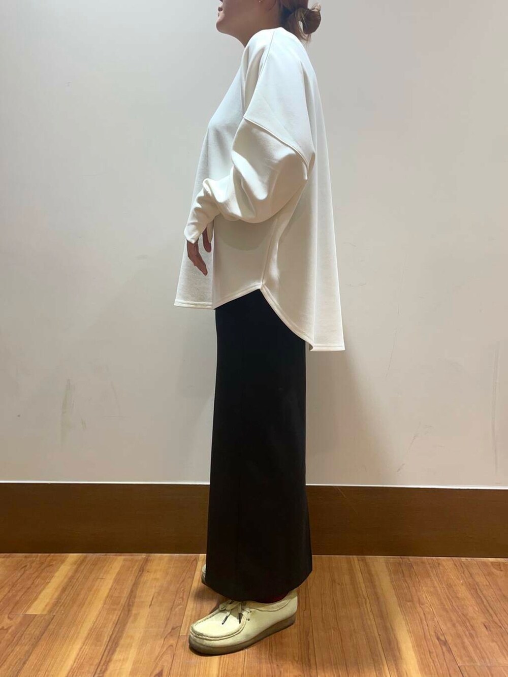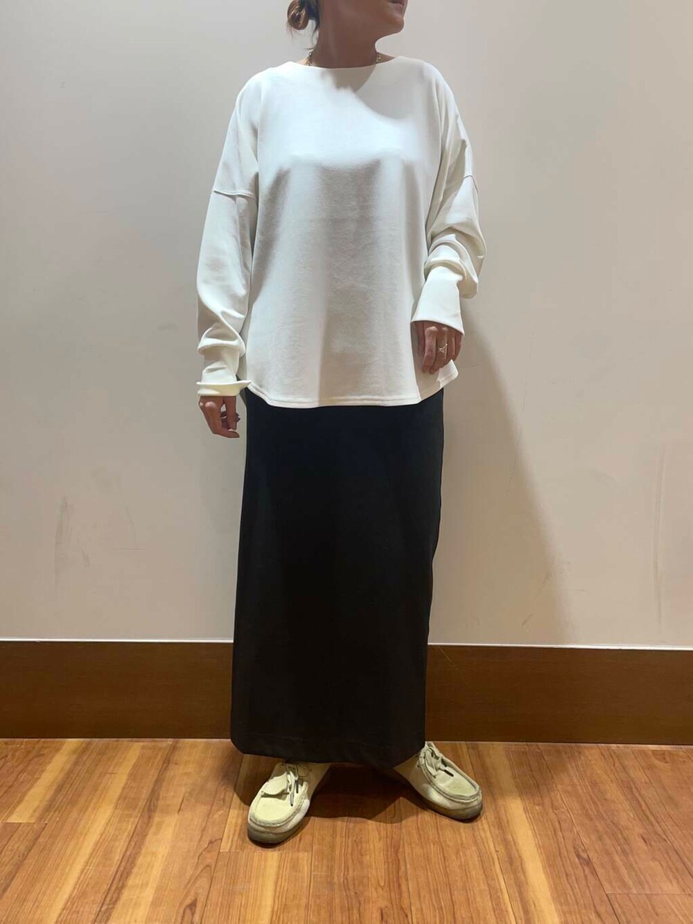 ゆとりのあるサイズ感なので中に薄手のタートルネックなど入れて着てもいいですね♩
