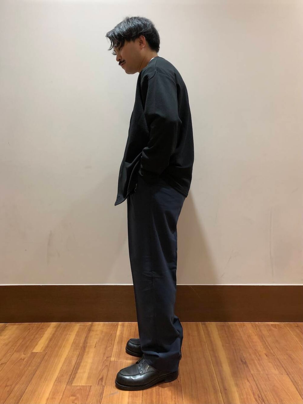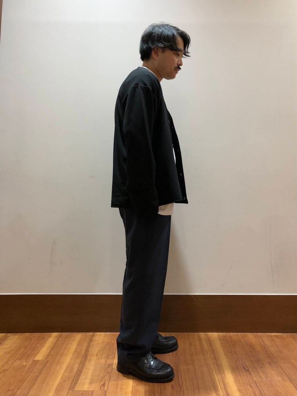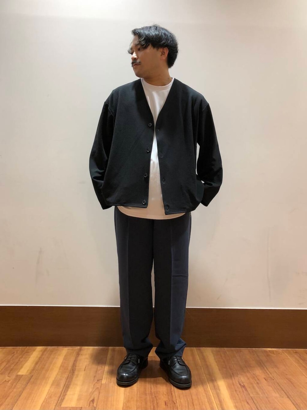 パンツはテーパードのシルエットが美しく、着回し抜群。