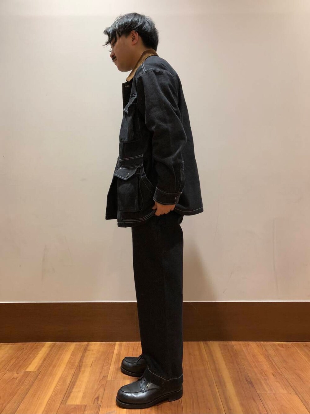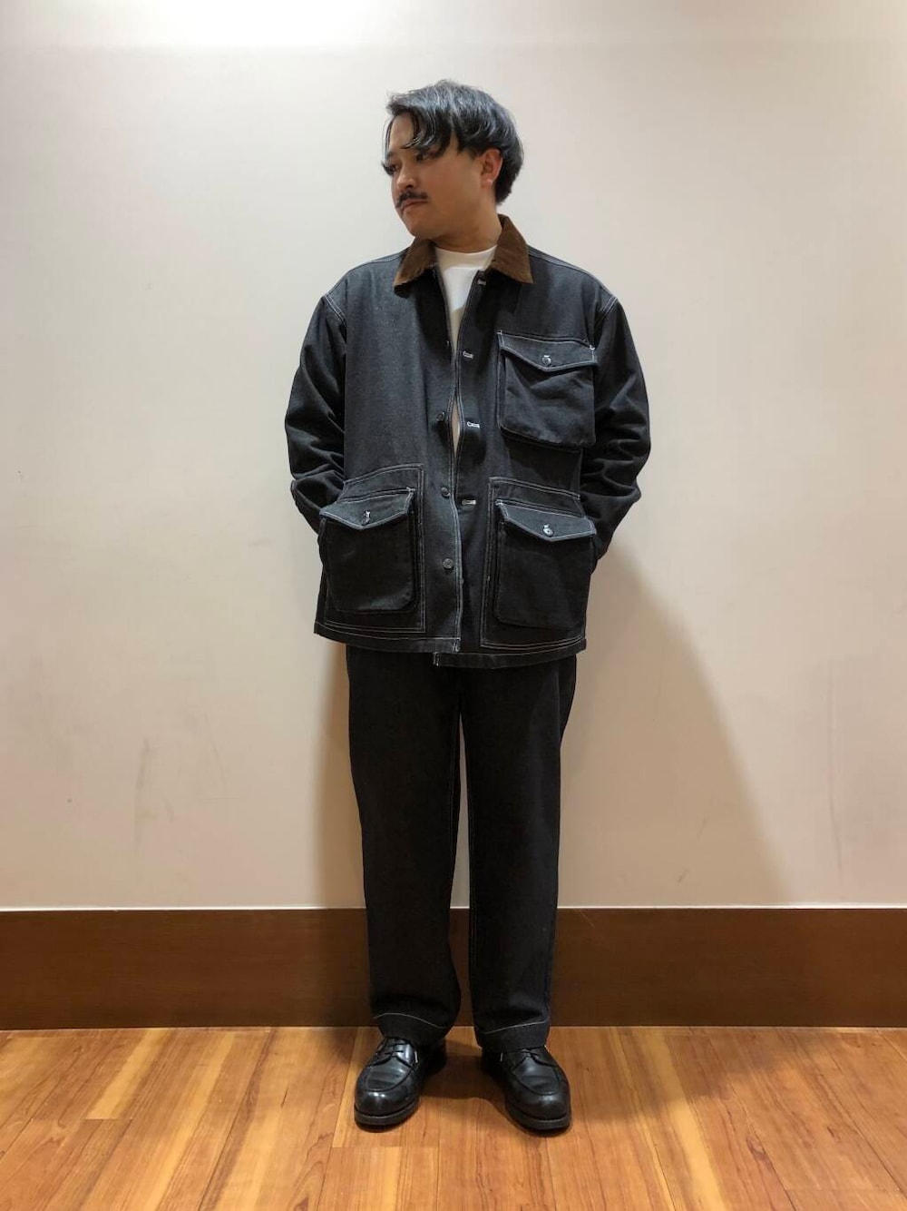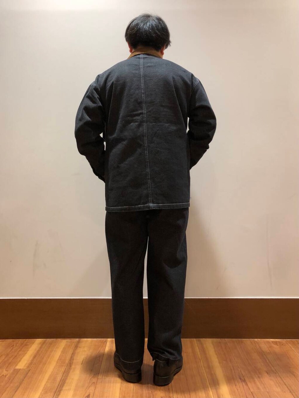 ジャケットは、コントラストステッチやコーデュロイの襟、大ぶりのポケットといったこだわりの詰まったカバーオールに仕上がっており、地厚でオーバーサイズな作りなので、中に着込んでいただくと、冬までしっかりお使いいただけます。