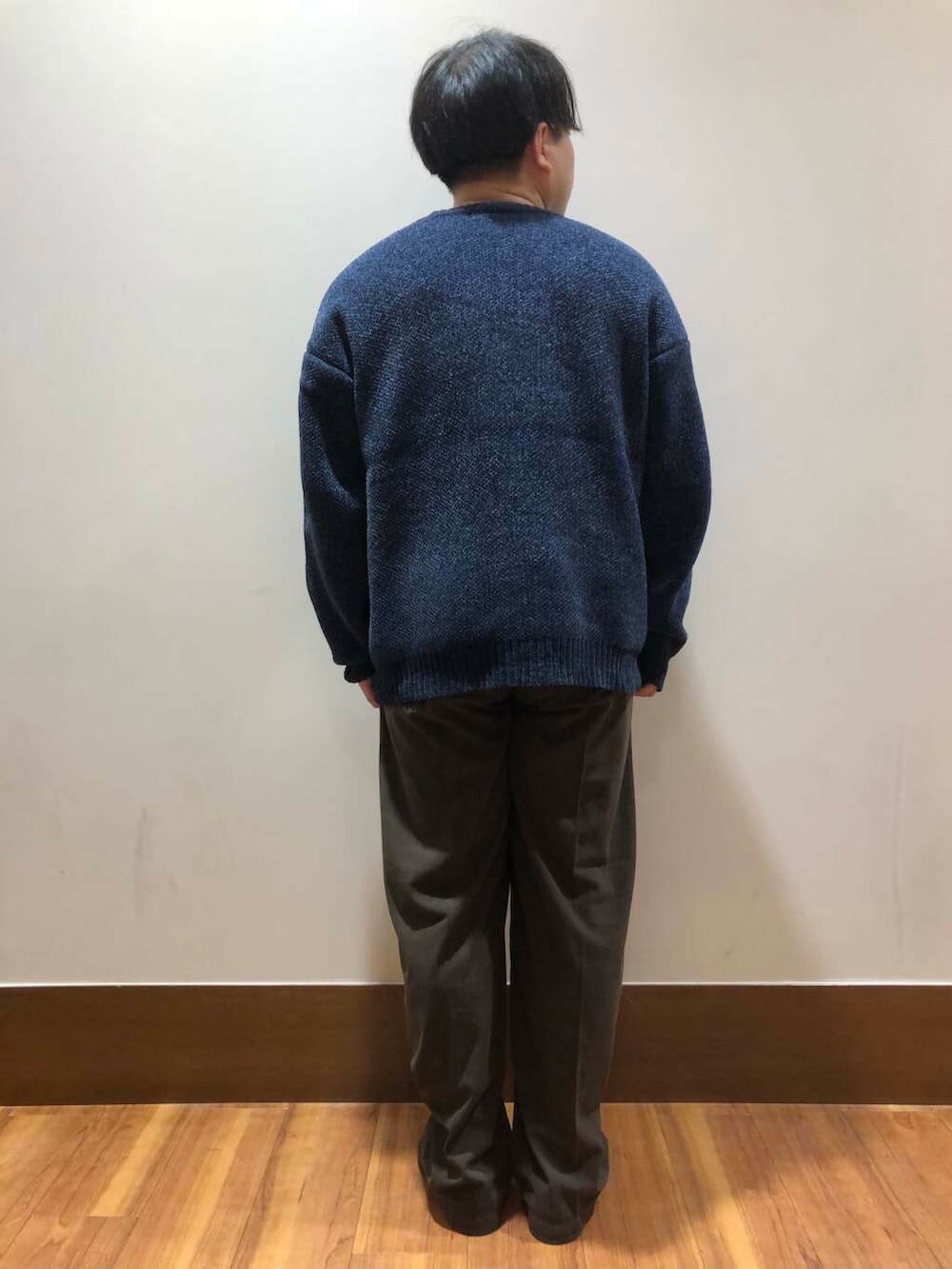 パンツは、細畝のコーデュロイ生地を使用しており、コーデュロイ特有のボリューム感が抑えられ、シルエットもきれいで、スッキリとした印象でお召しいただけます。