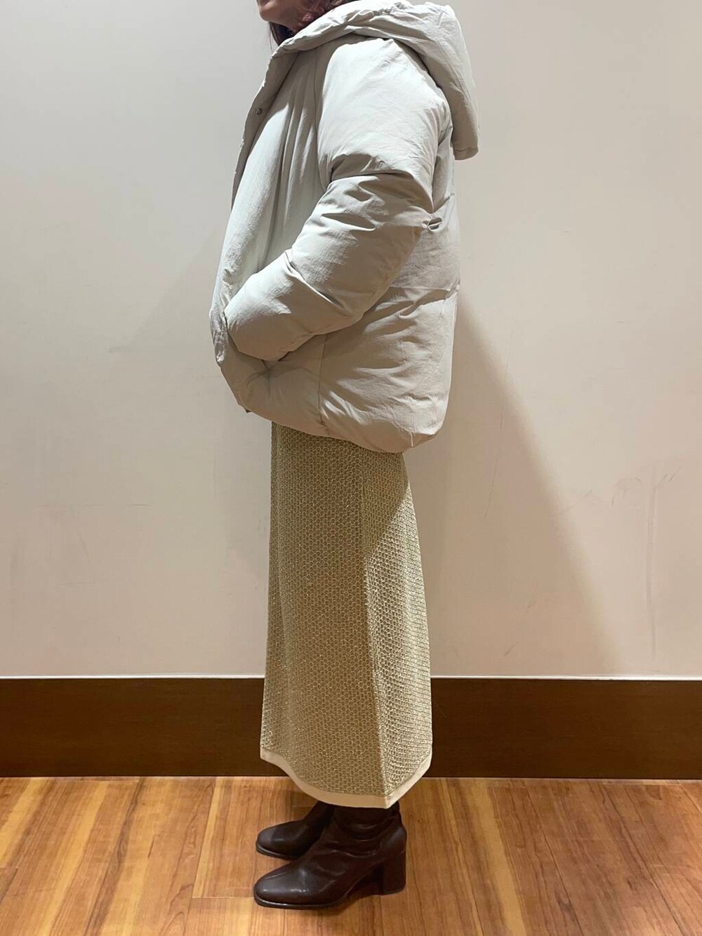 ボリューム感のあるアウターなのでスカートで少し女性らしくホリデー意識しました🎶