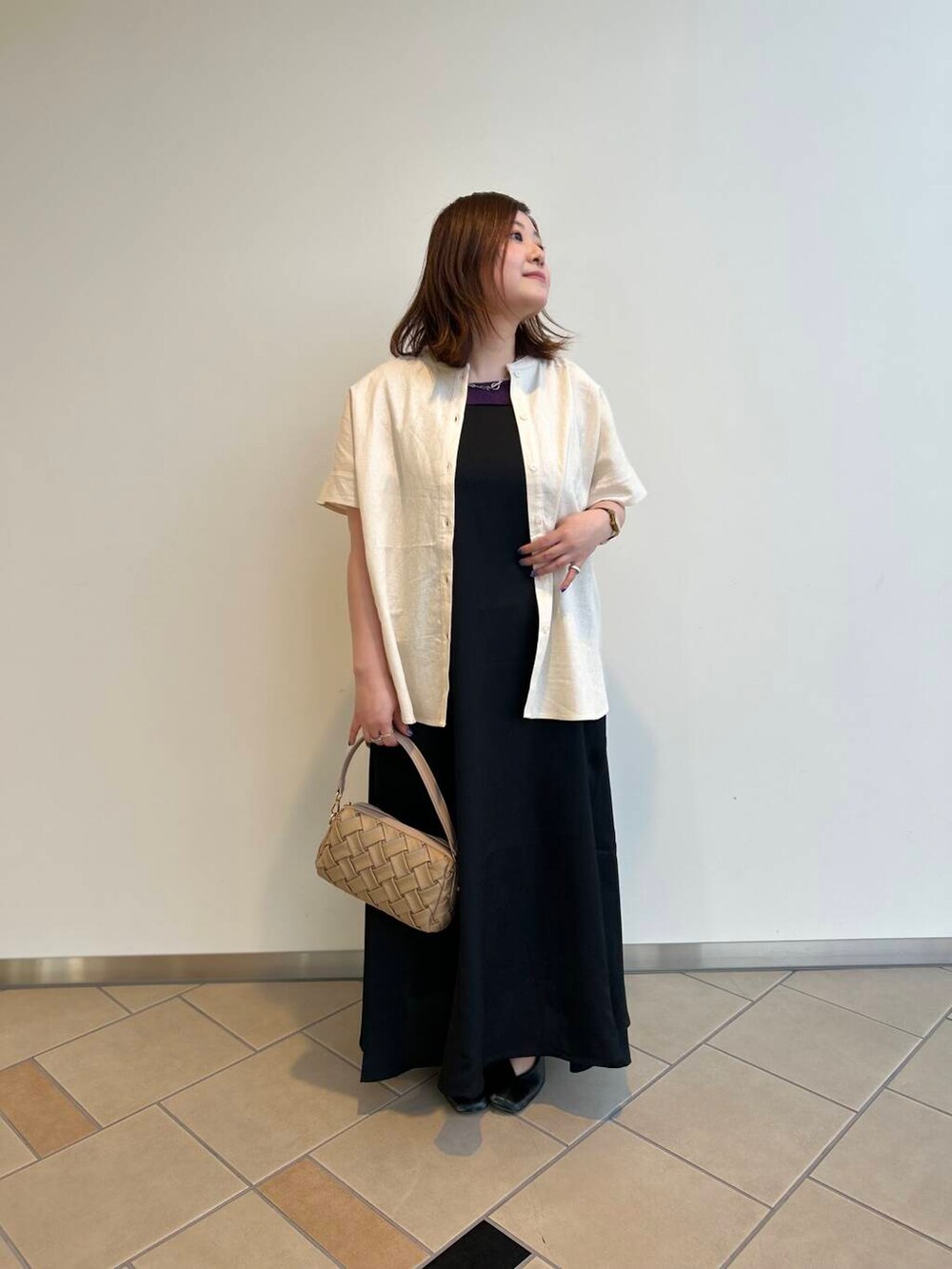 キャミワンピースにリネンシャツを羽織ったキレイめカジュアルコーデです☺️