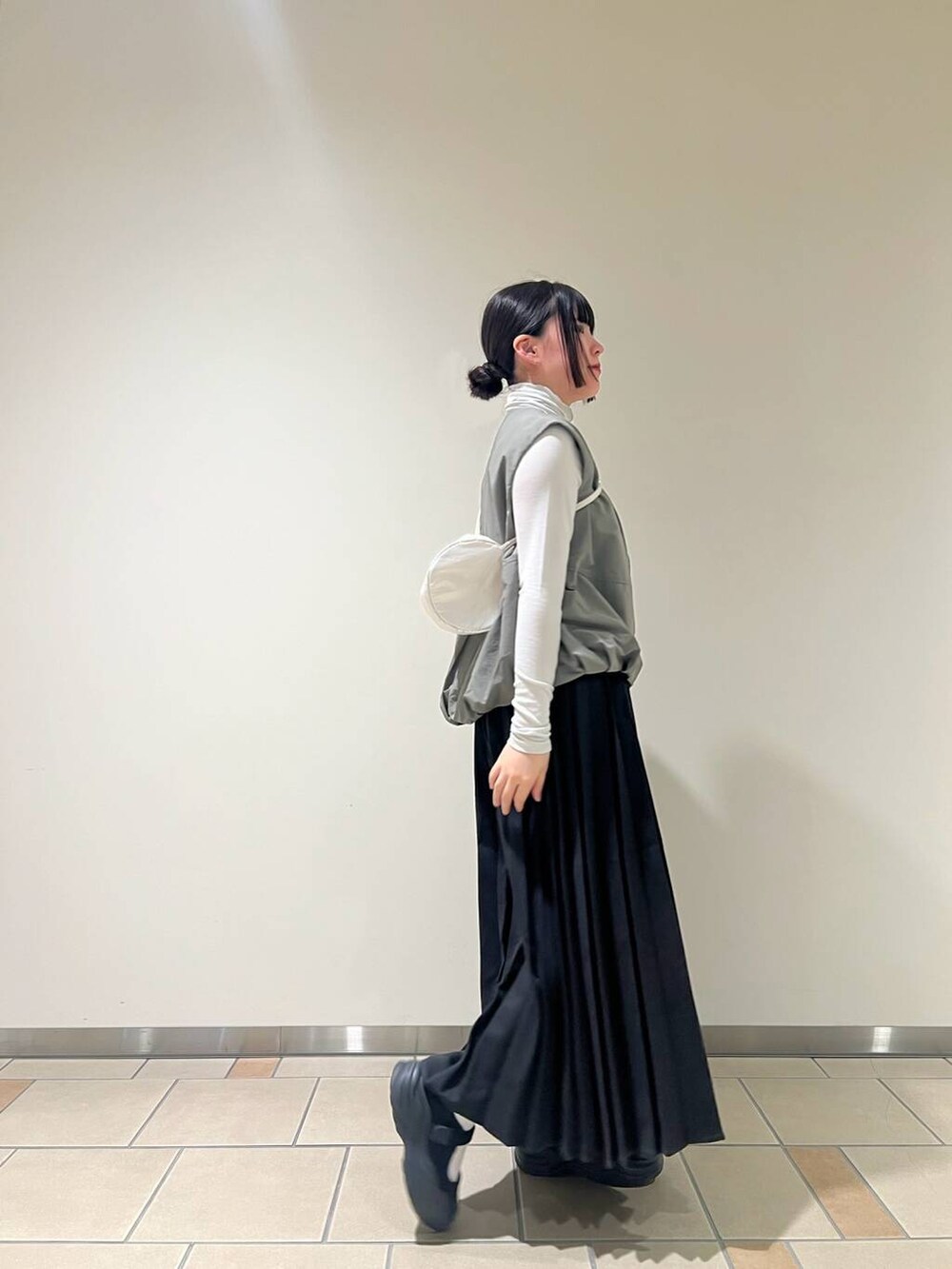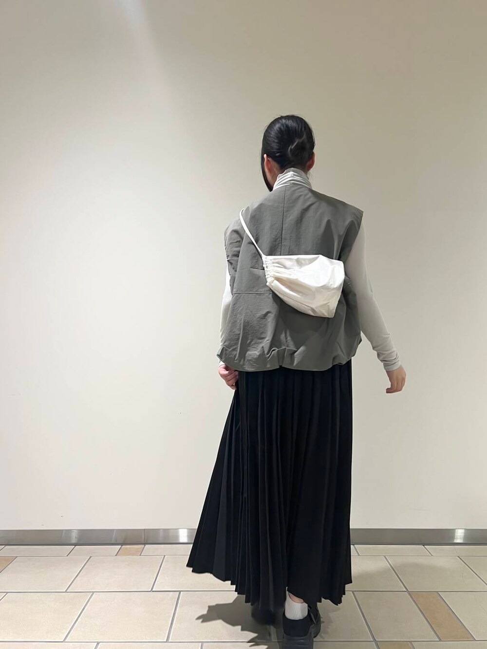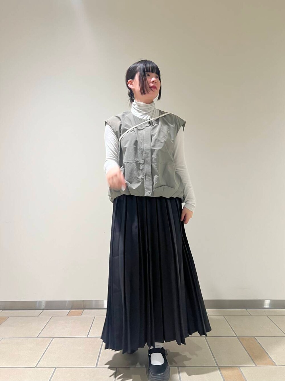 ナイロンベストとプリーツスカートでカジュアルコーデにしました★