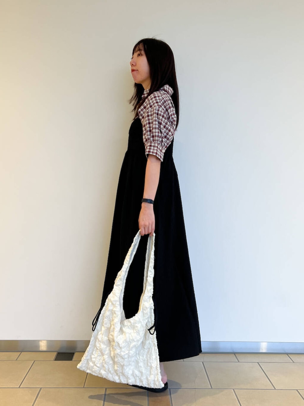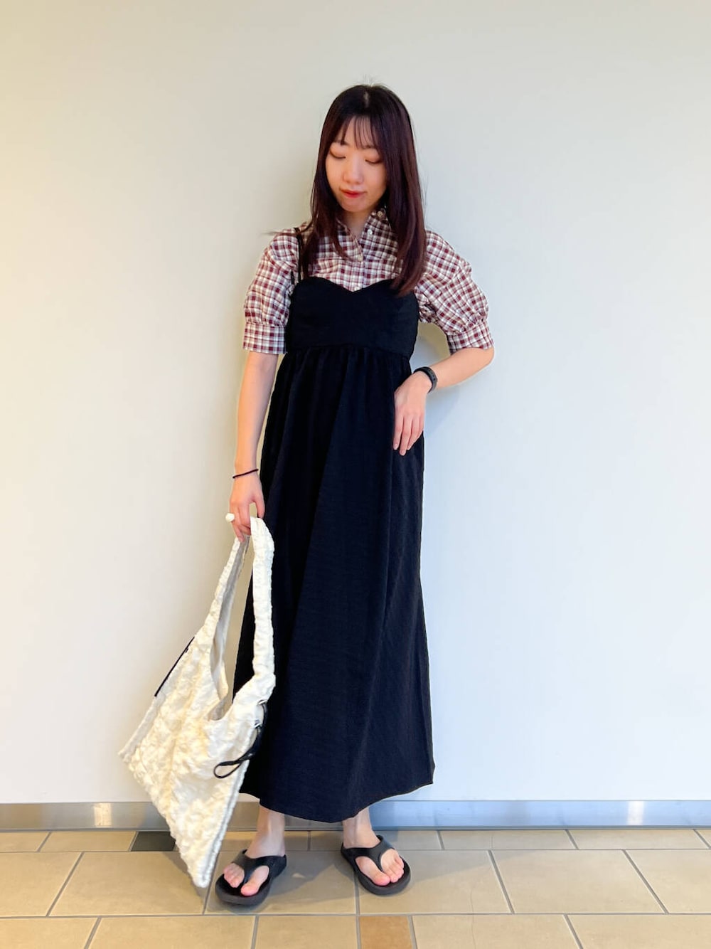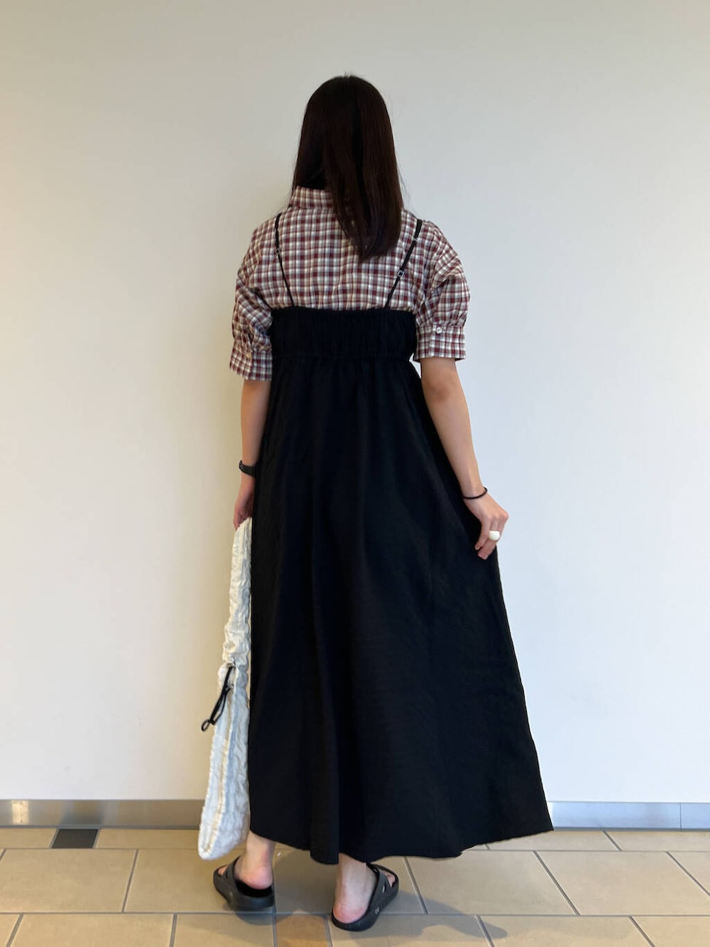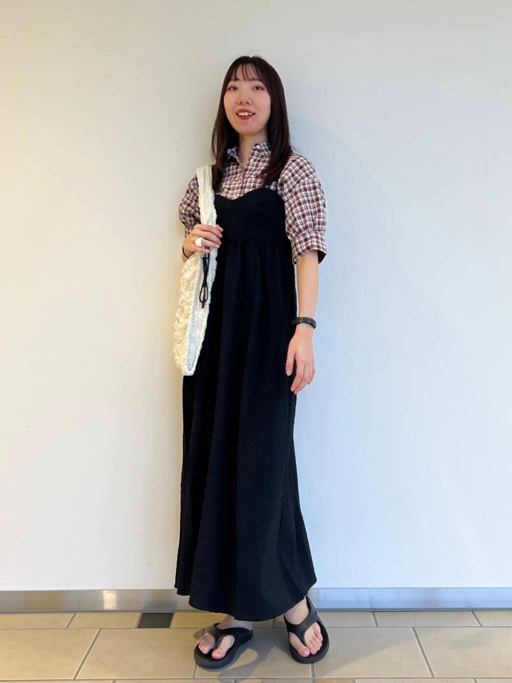 チェックシャツを合わせて黒が引きたつコーデにしてみました!