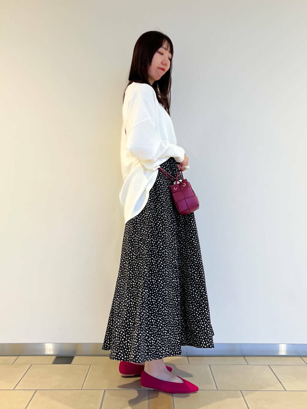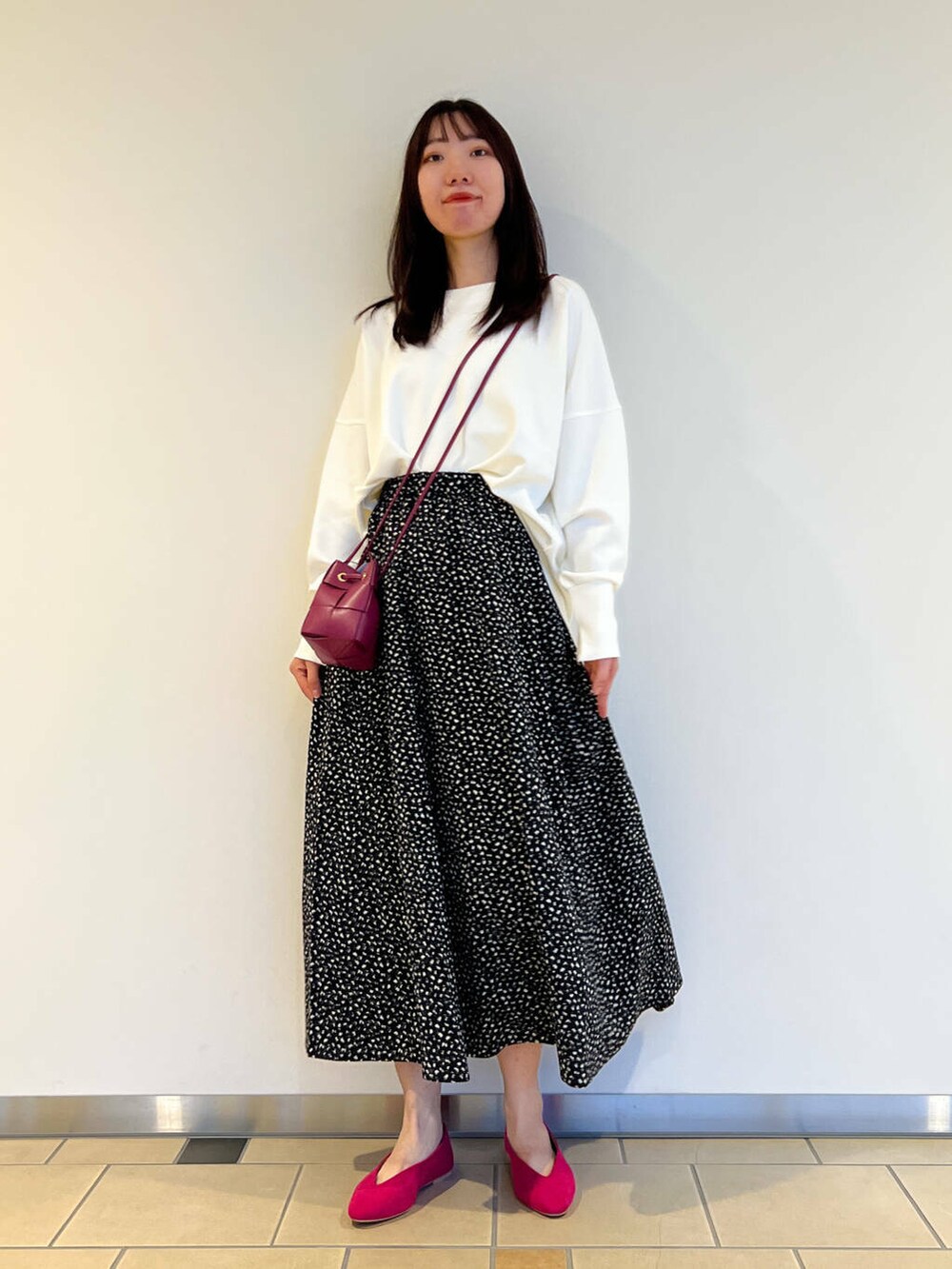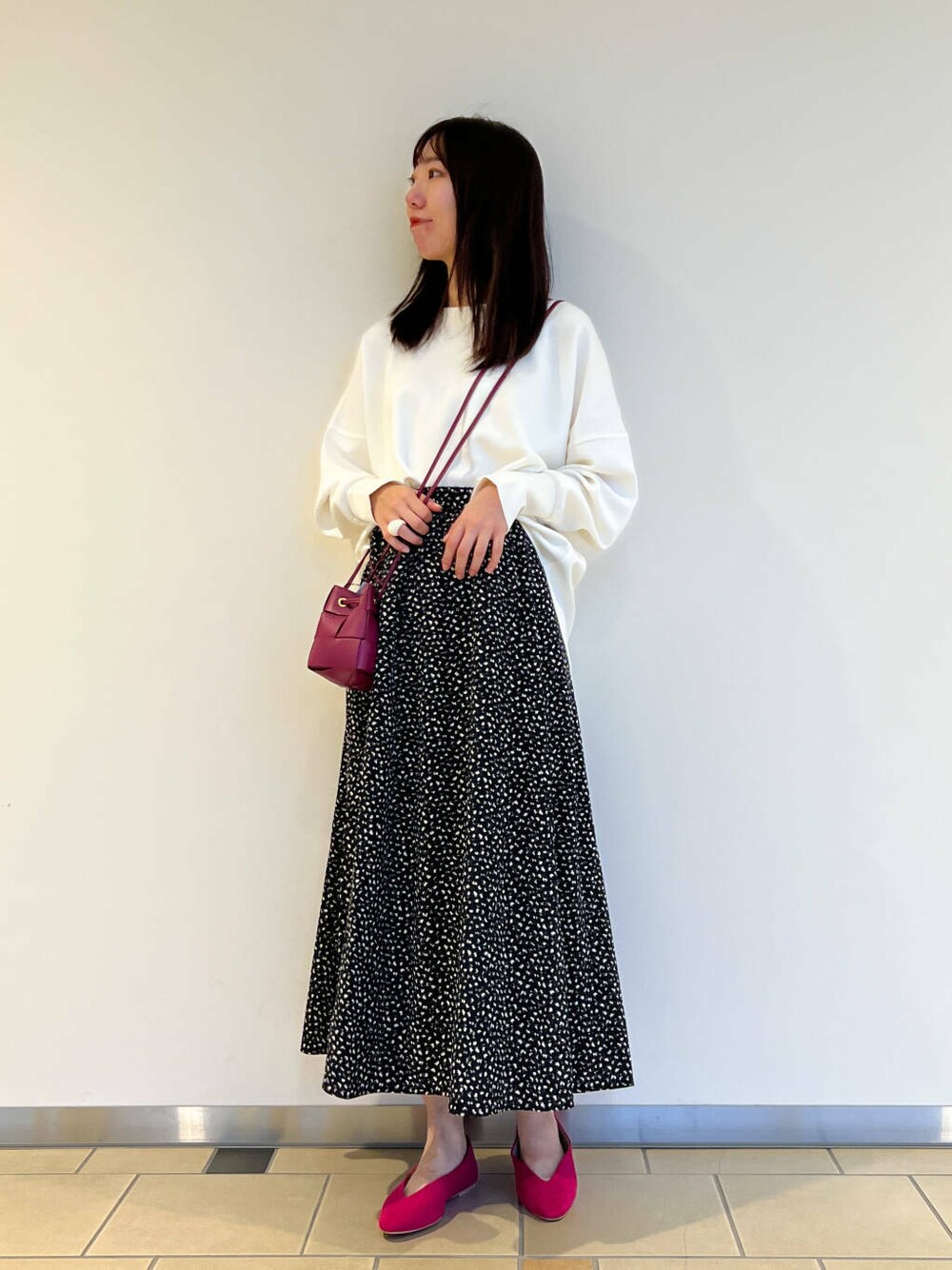 フレアスカートを合わせて女性らしいスタイリングにしてみました!