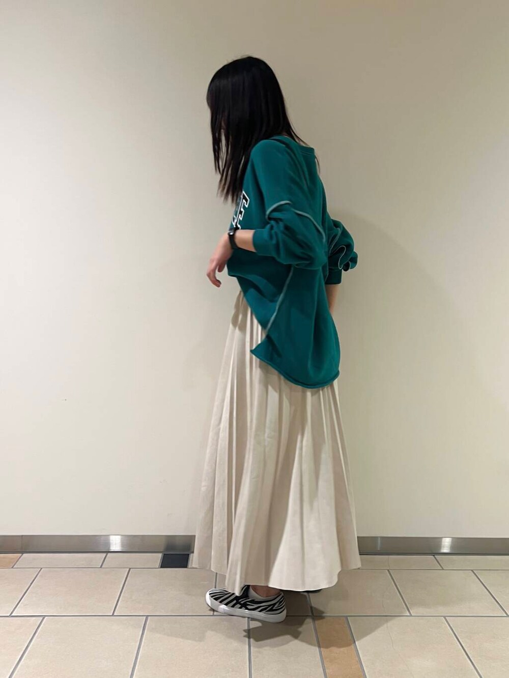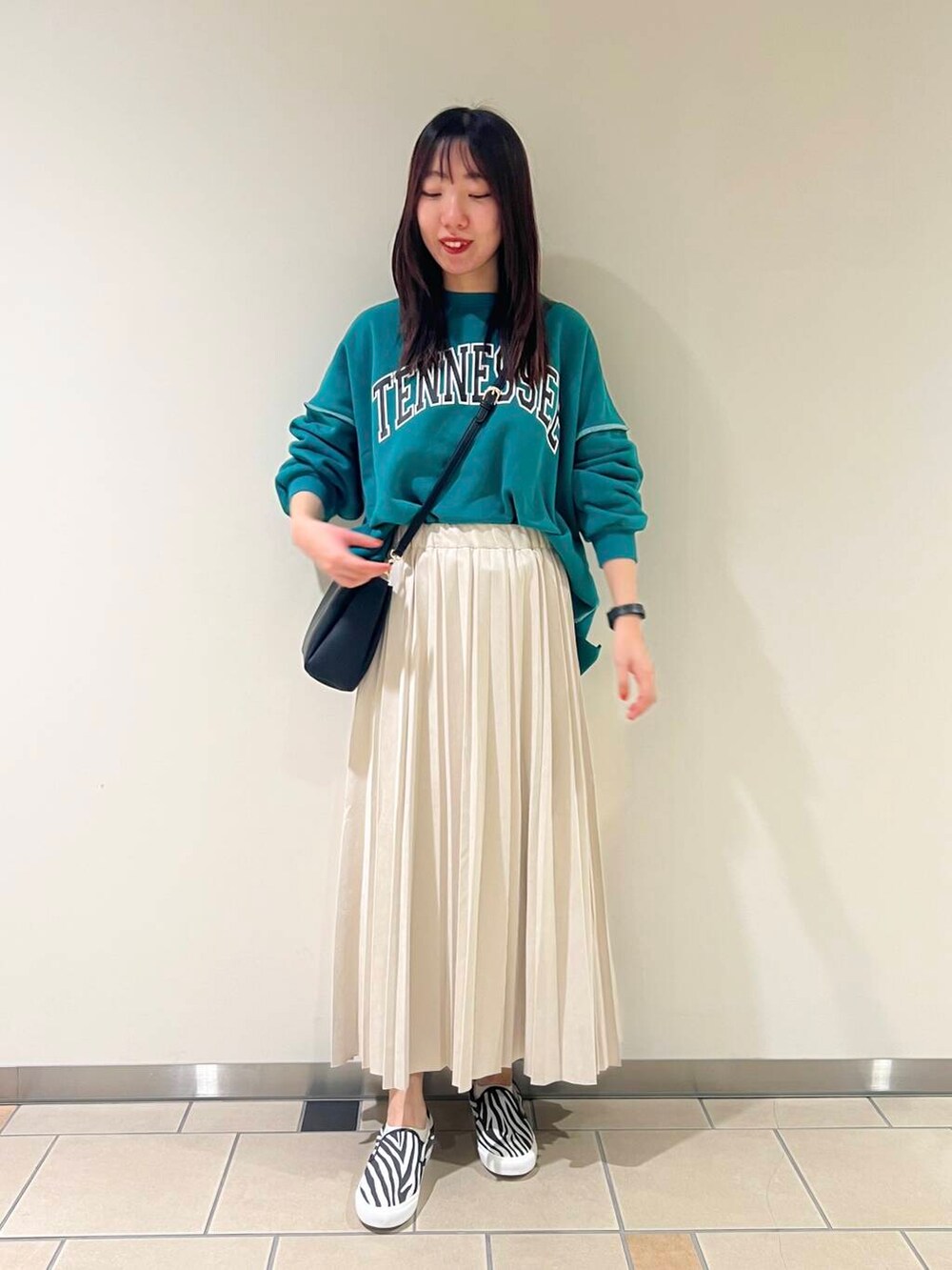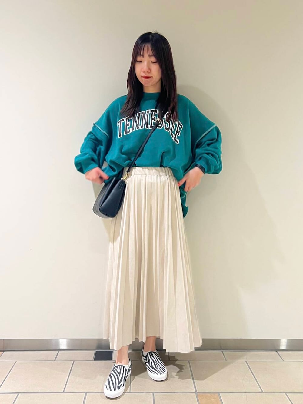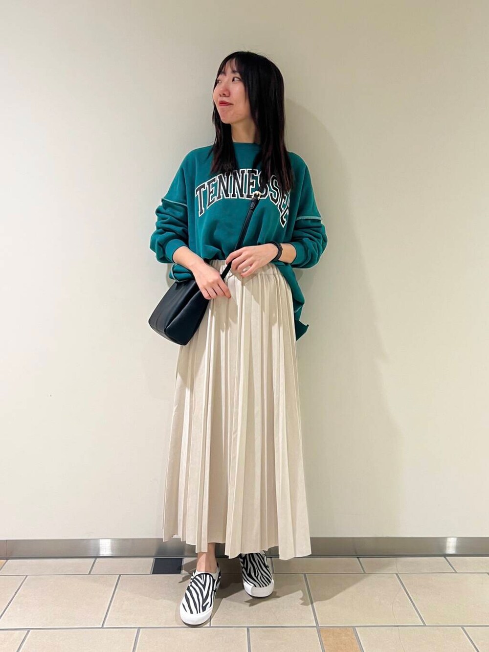 今回はラフすぎないコーデにしたかったのでプリーツスカートで女性らしさをプラスしてみました^^