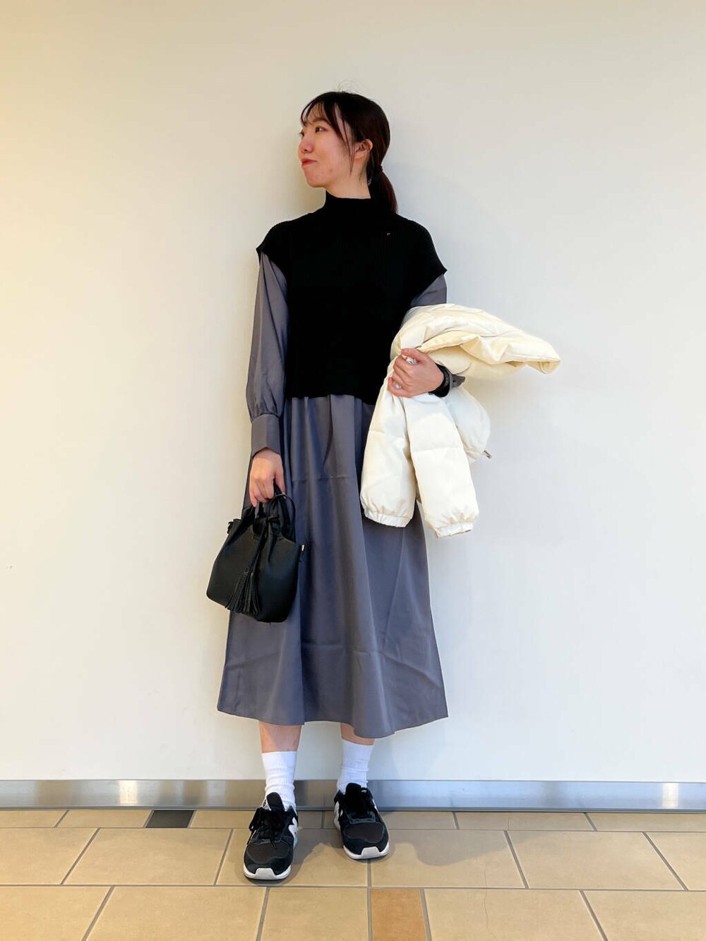 ワンピース生地はつるつるとしているのでアウターを着る時にも腕通しが良くストレスフリーです^^