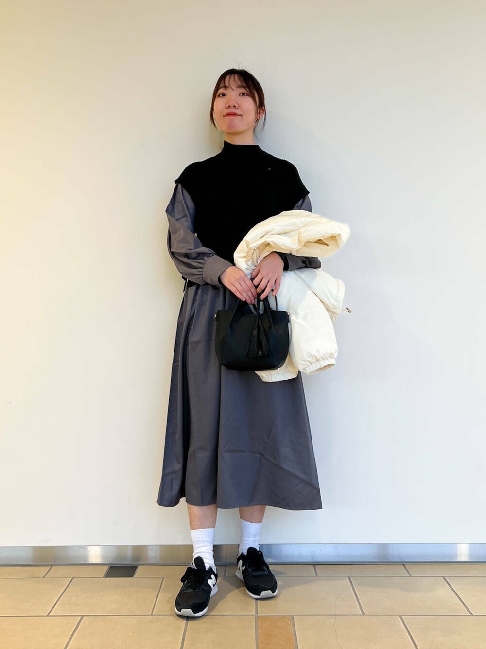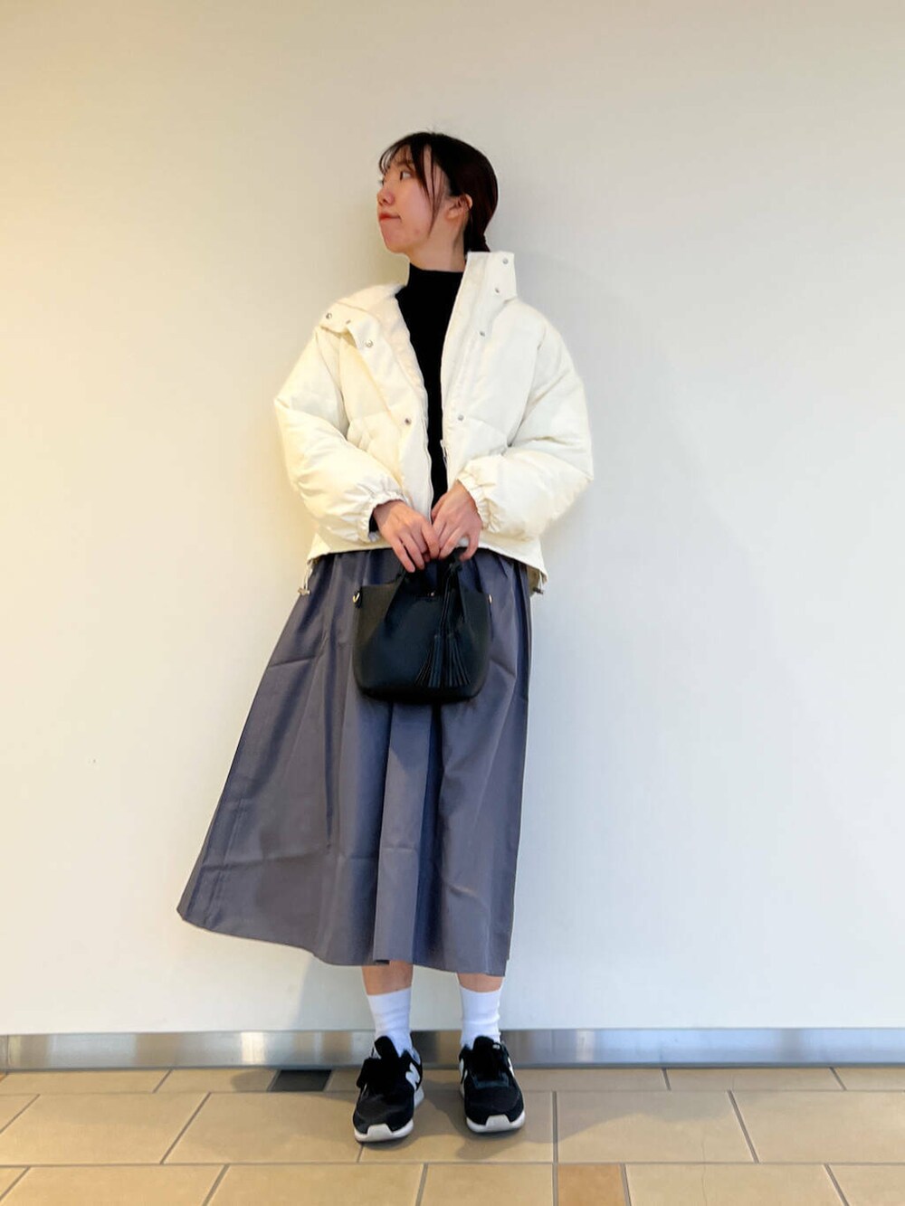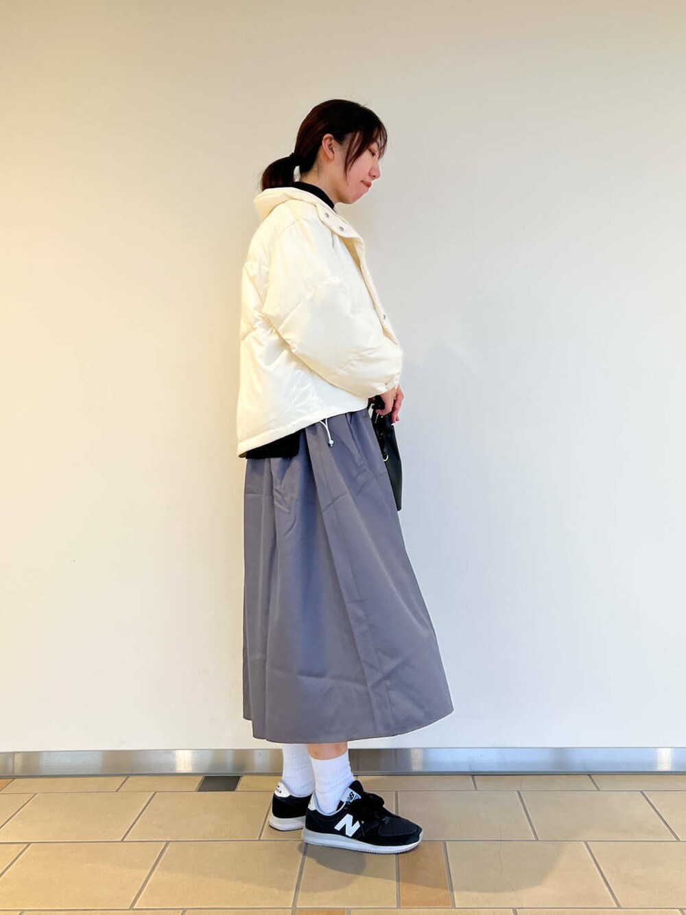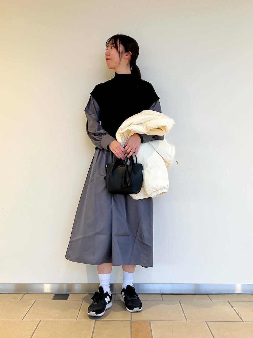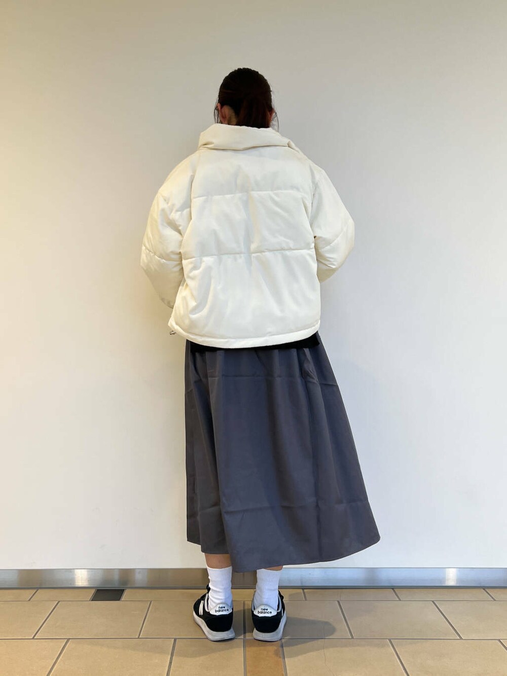丈は168cmだとふくらはぎの真ん中くらいなのでパンツをレイヤードするのもおすすめです。