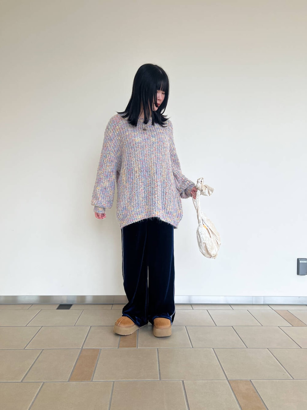 おしりまですっぽり隠れるこのニット形も色も可愛すぎます💗