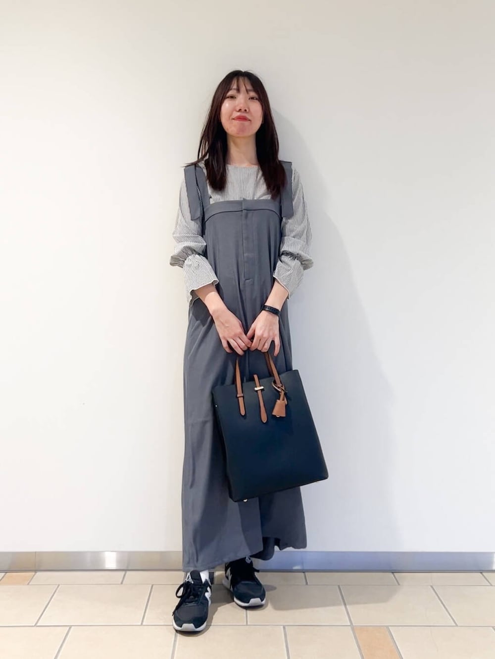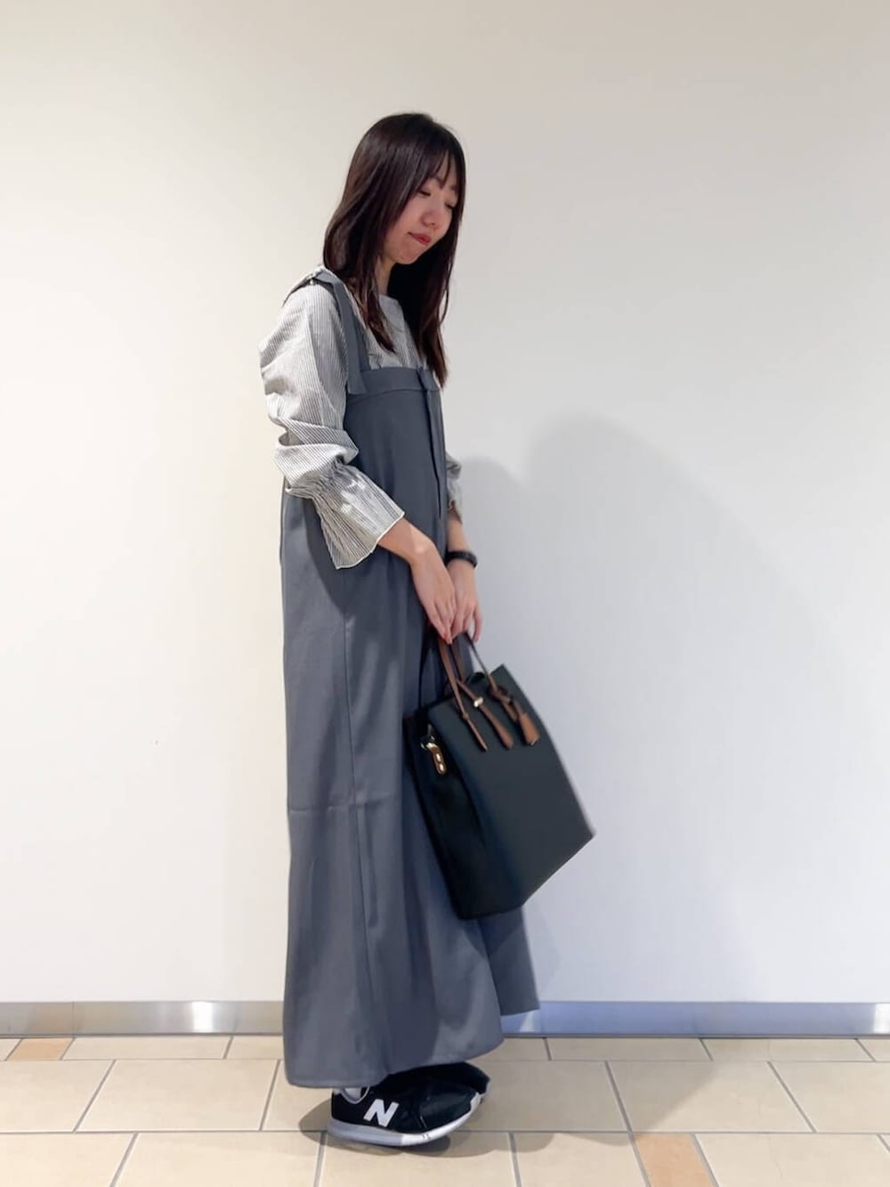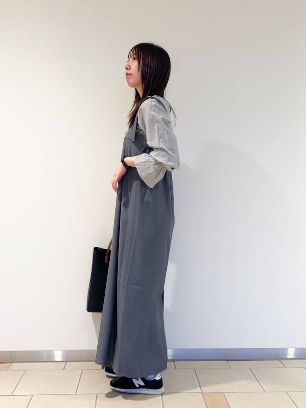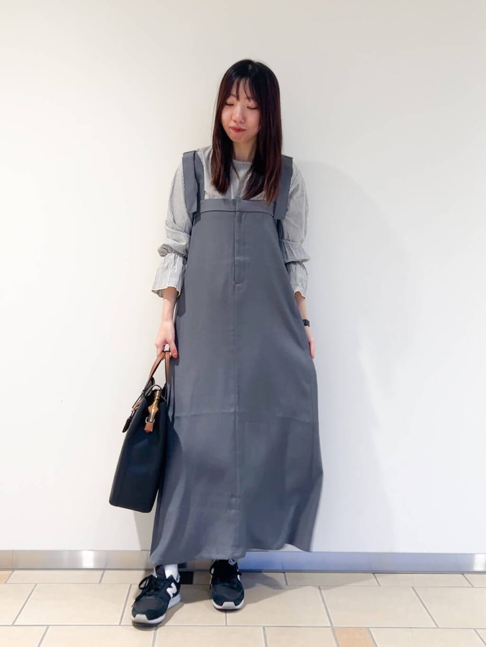 ジャンパースカートはとろみのある軽い素材で少し光沢感があるので上品見えするアイテムでした!