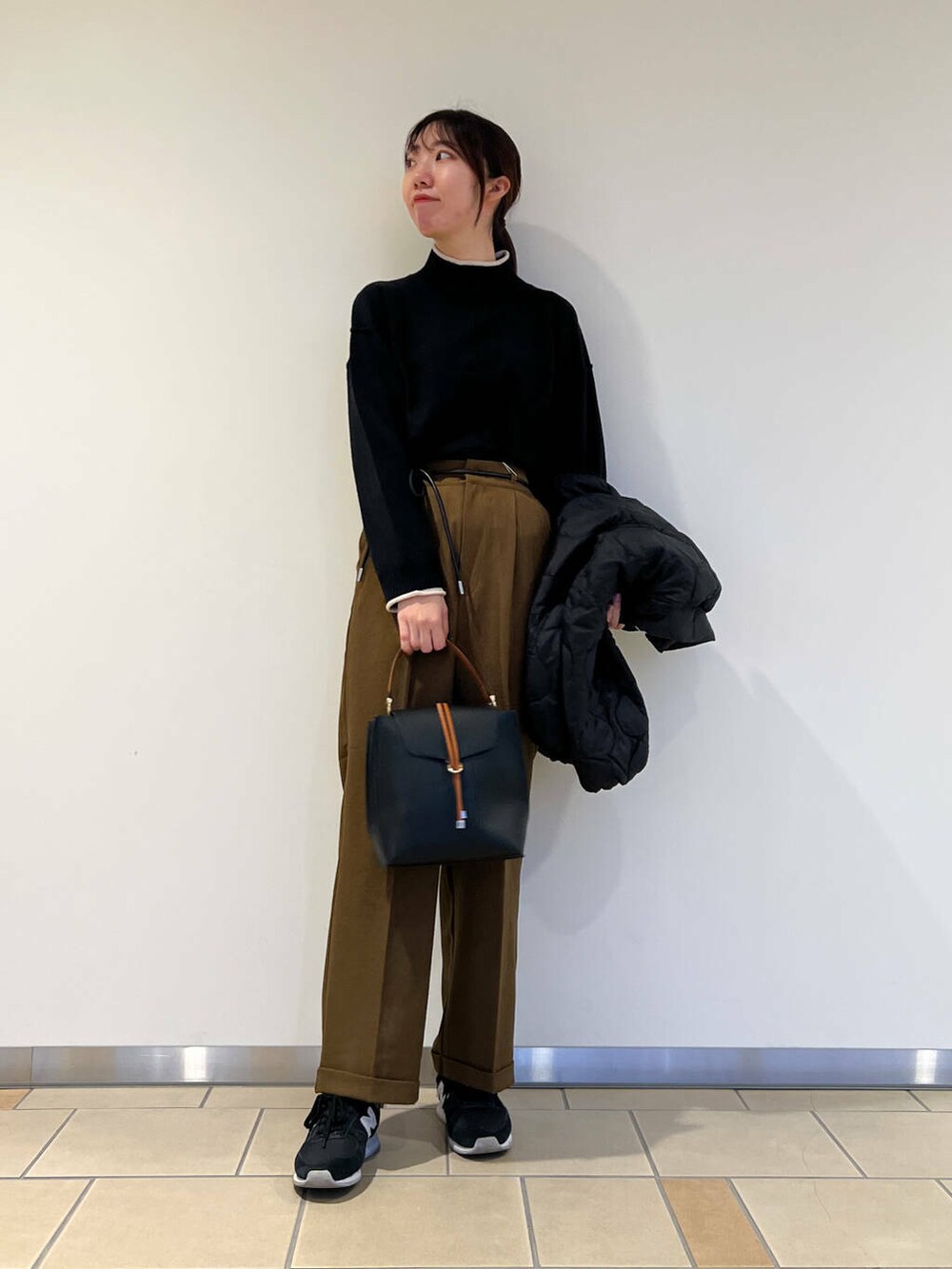 配色デザインで1枚で映えるニットでパンツコーデを組んでみました!