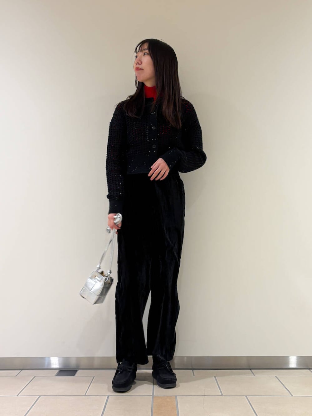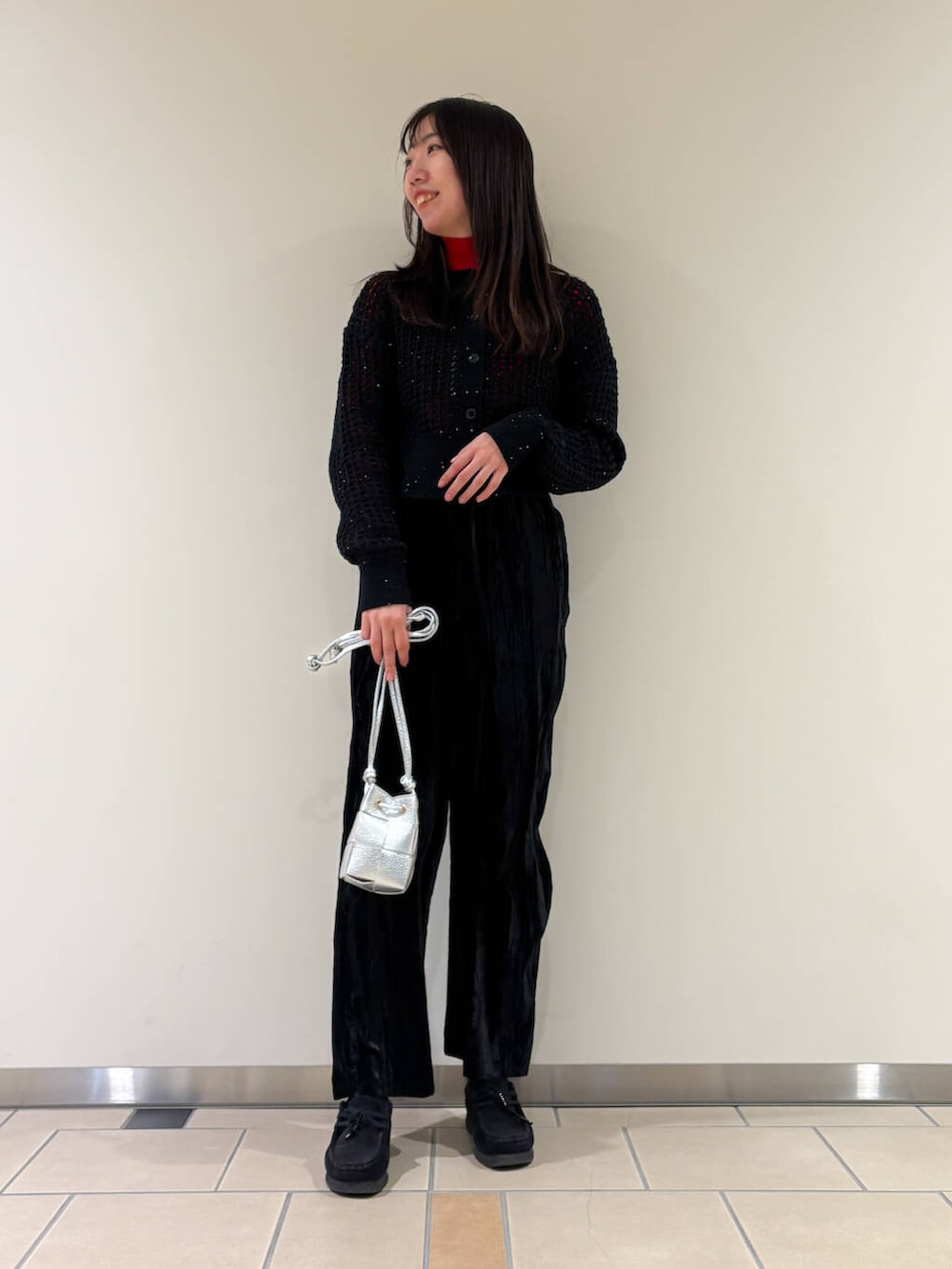 ボトムにはベロアパンツを合わせて素材を楽しむコーデにしてみました!