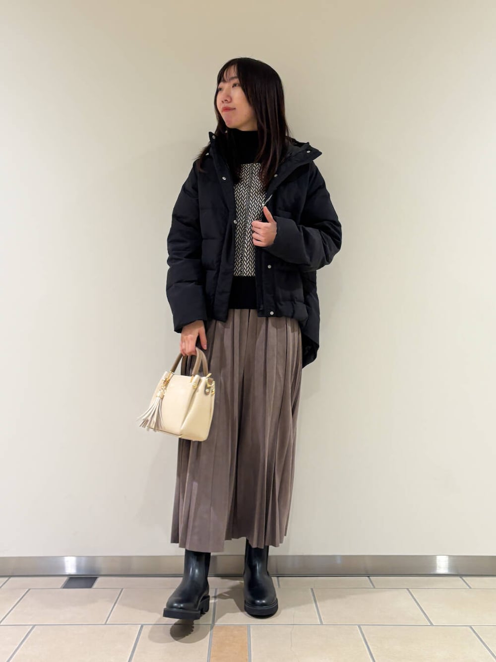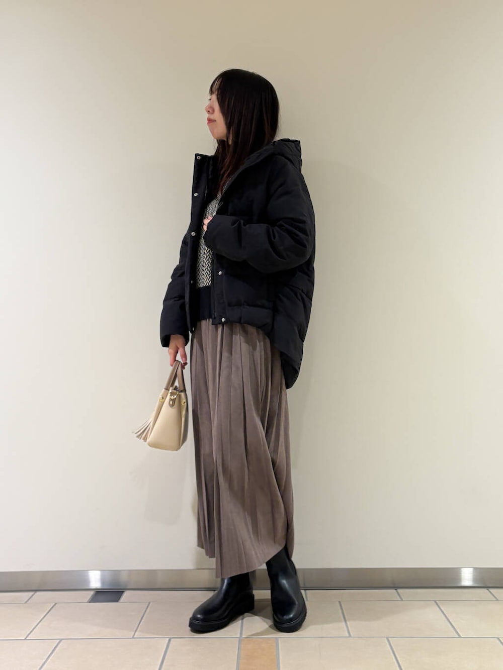 プリーツスカートを合わせて大人可愛いスタイルに^^