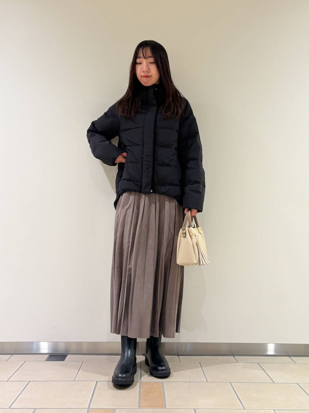 お尻がすっぽり隠れるのにやぼったく見えないダウンです◎