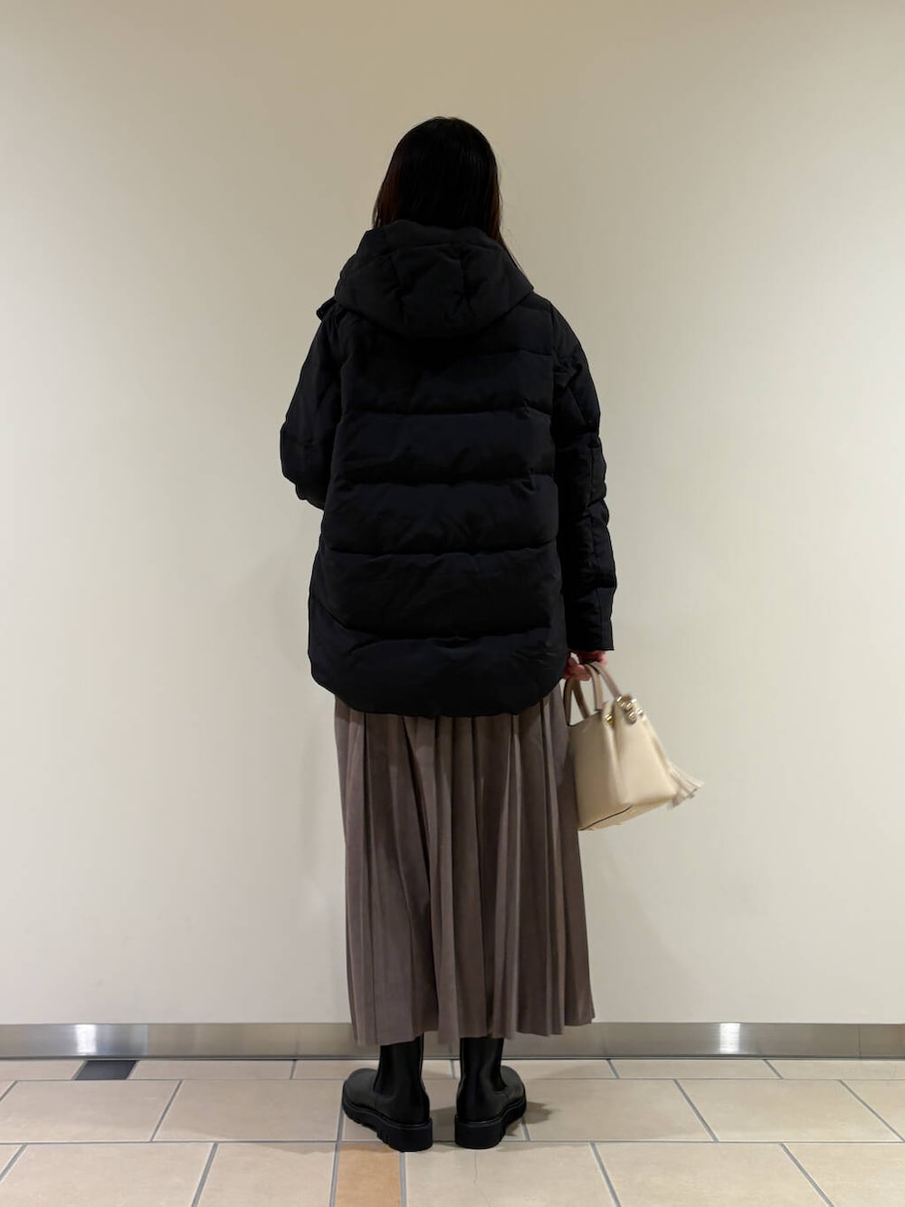 後ろ下りのデザインなのでスッキリ見えます!そしてダウン80%なので暖かさもバッチリ♩