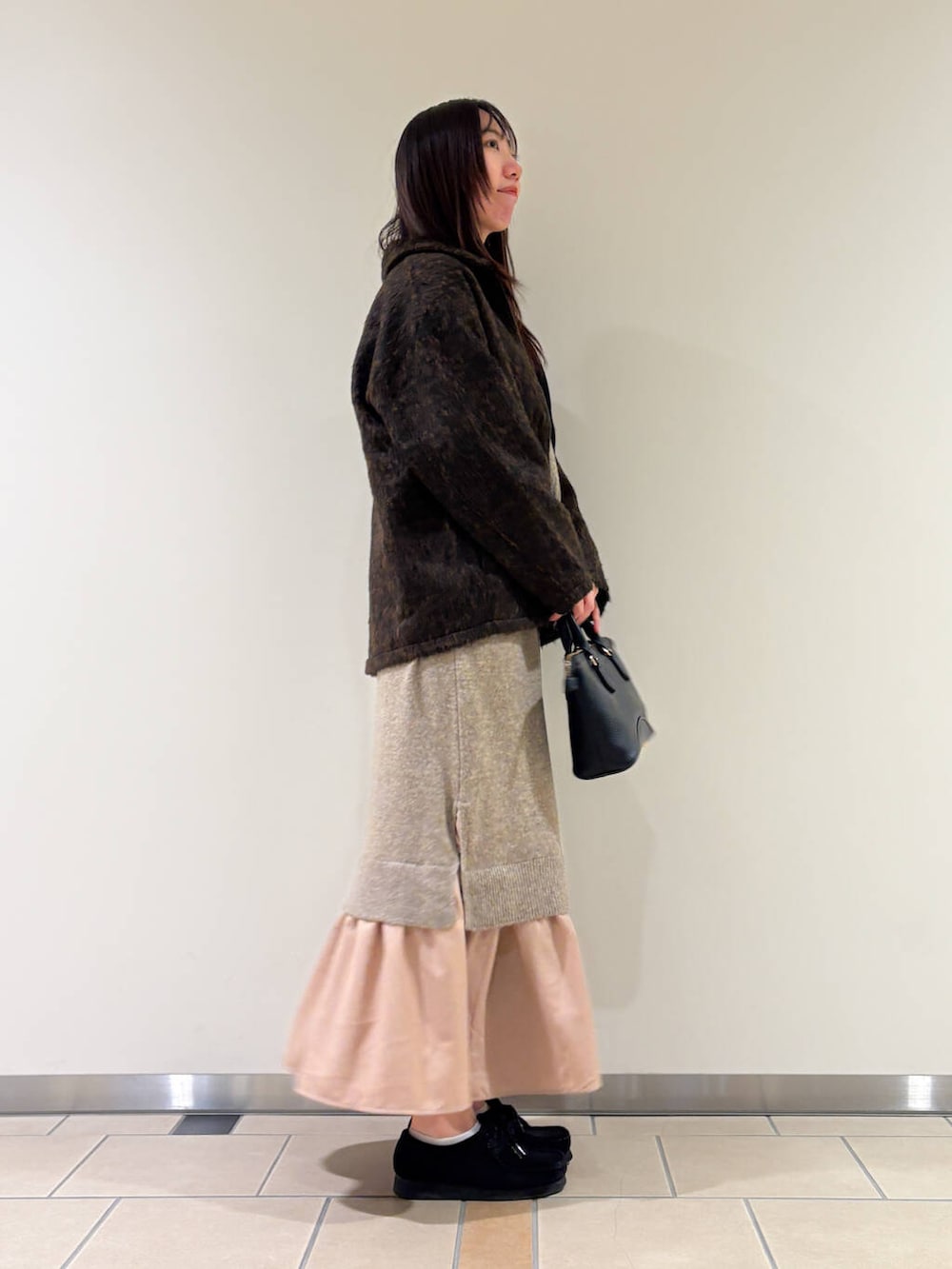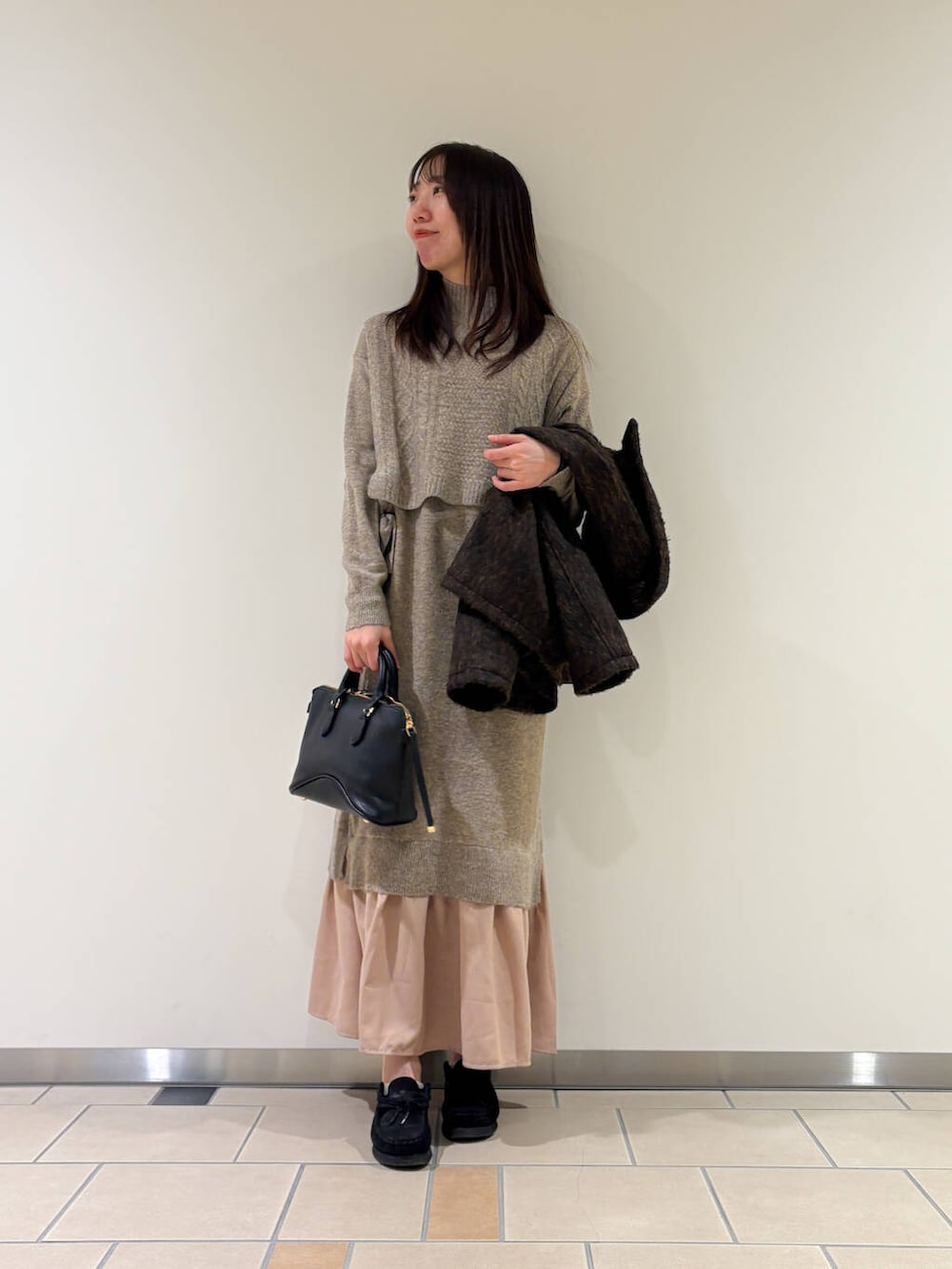 ニットワンピはもちもちしていて着心地抜群でした!裾にはさらさらした異素材の生地が切り替えてあるので足元がもたつかず良かったです!