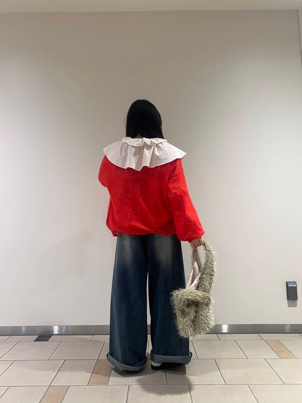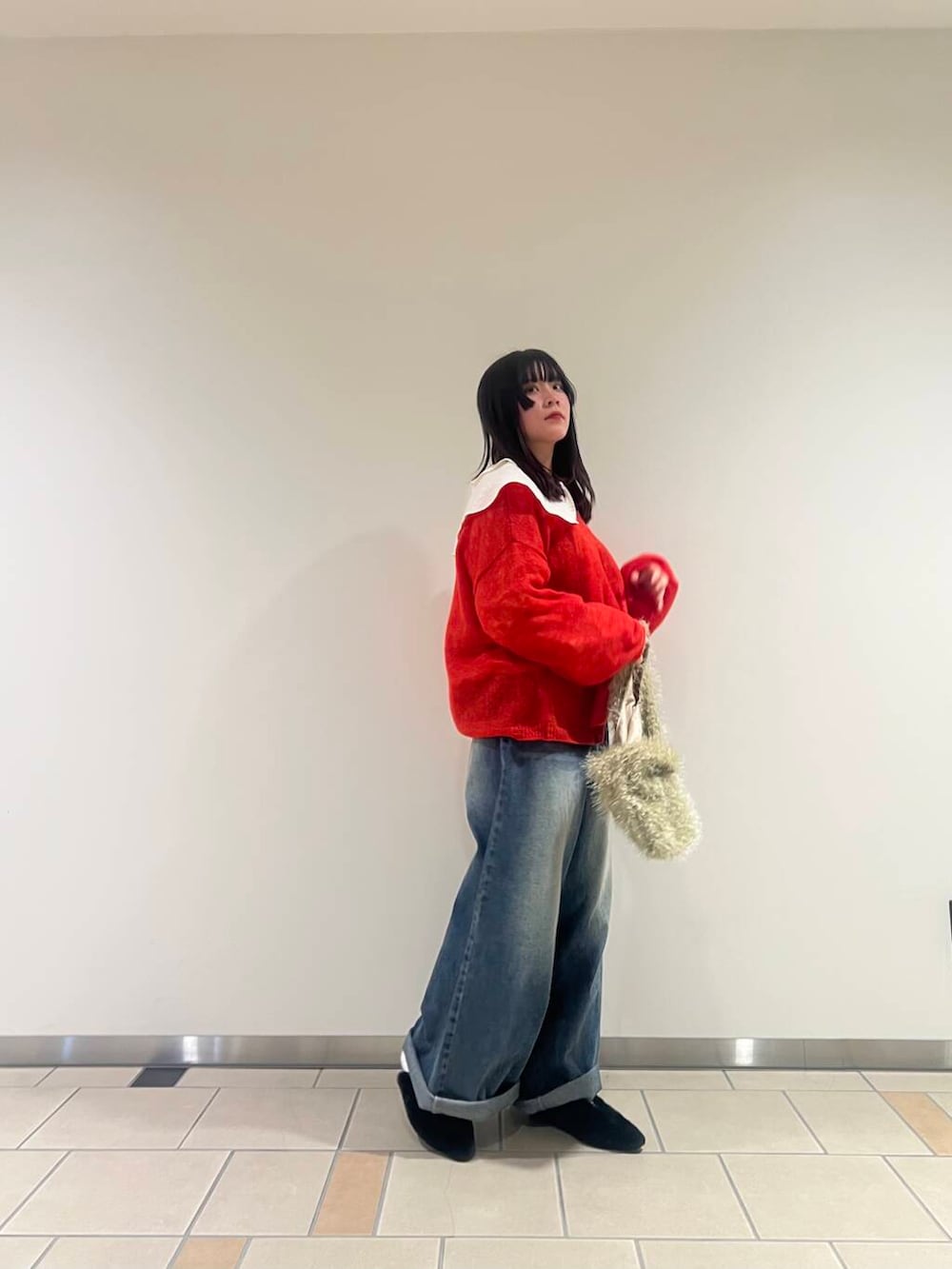 ワイドデニムと合わせて全体的にゆったりしたコーデにしました!