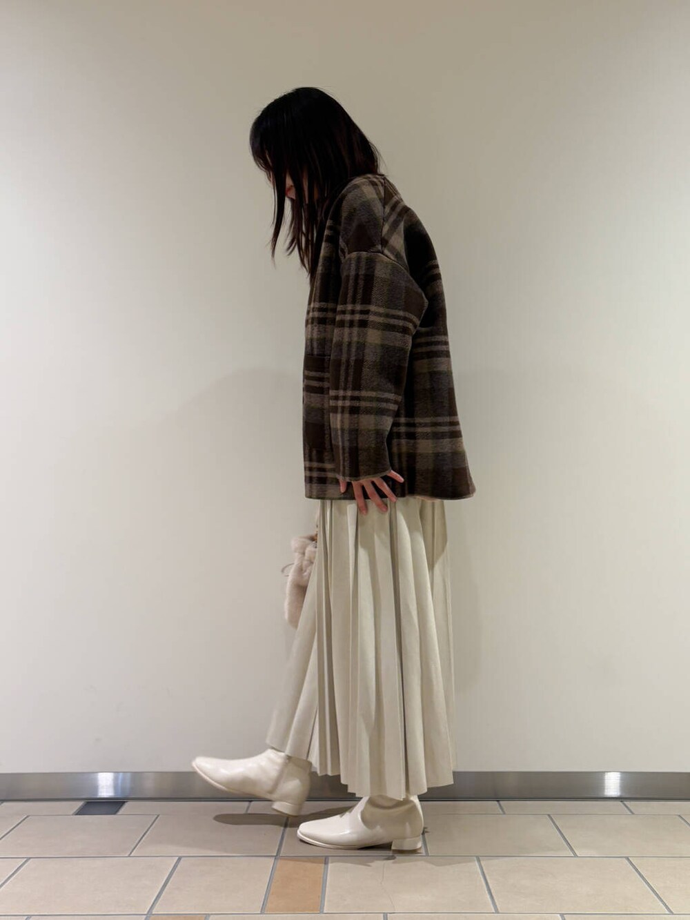 合わせたアイテムを綺麗めにしていて、スウェットのラフさとギャップが出るコーデにしてみました!